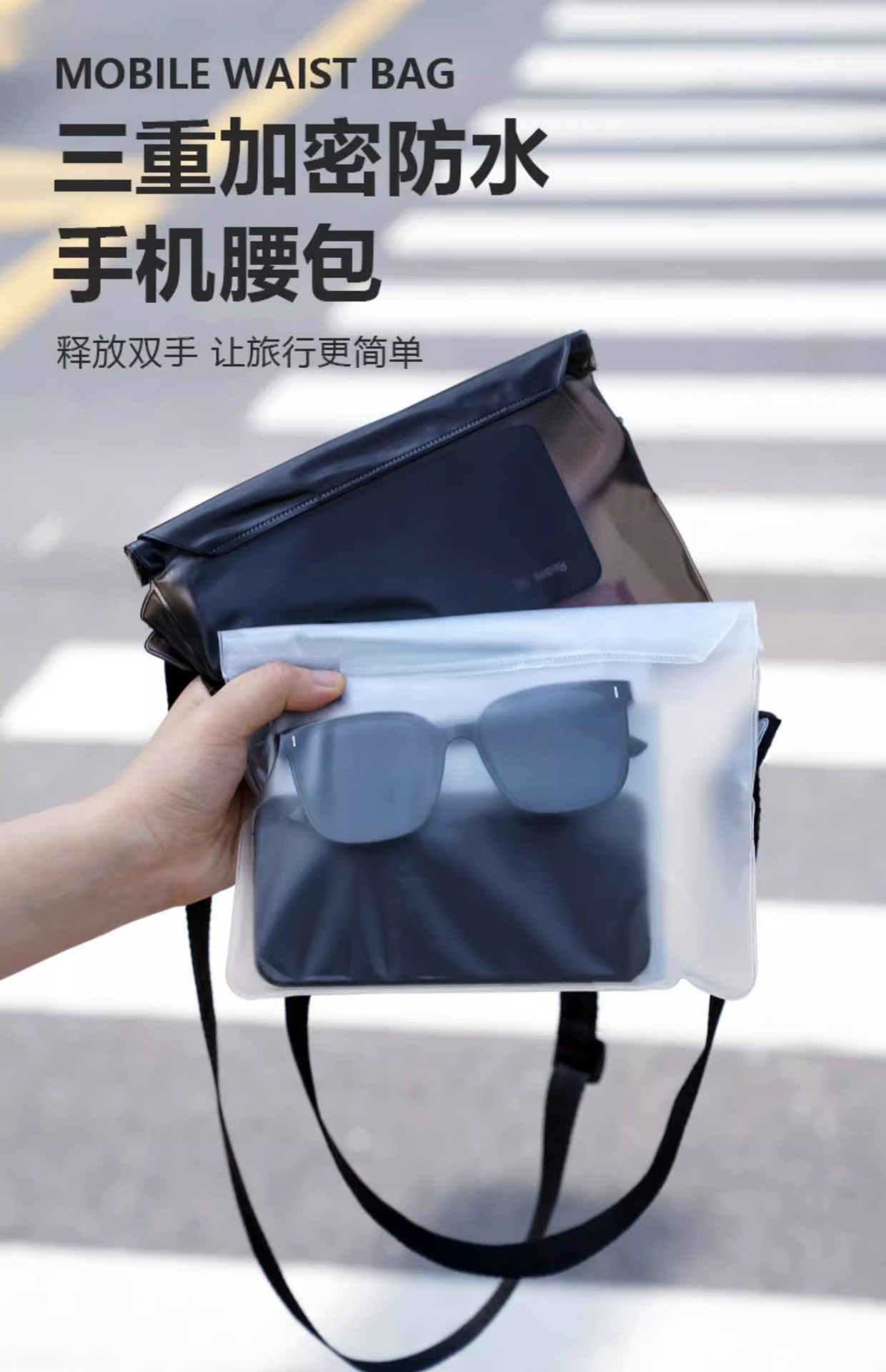 Кросс-бодерная водонепроницаемая сумка на пояс для мобильного телефона, защита от брызг, для фестивалей на открытом воздухе, трехслойное герметичное хранилище, для больших мобильных телефонов, в наличии