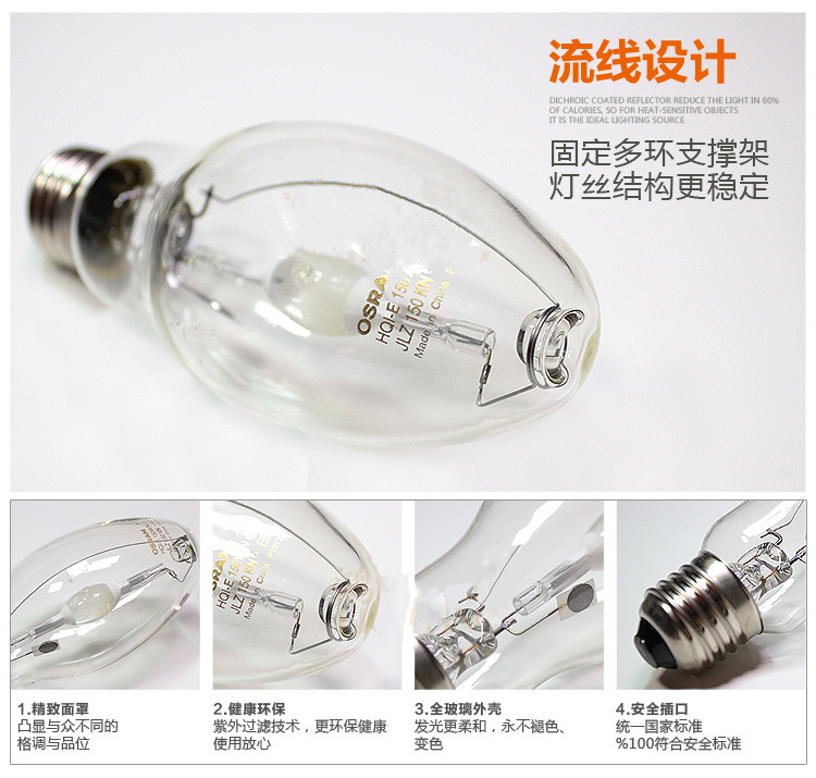 Лампа металлогалогенная Osram Scandium-Natrium с одним концом Hqi-E 70W100W150W250W 400W/N прозрачная