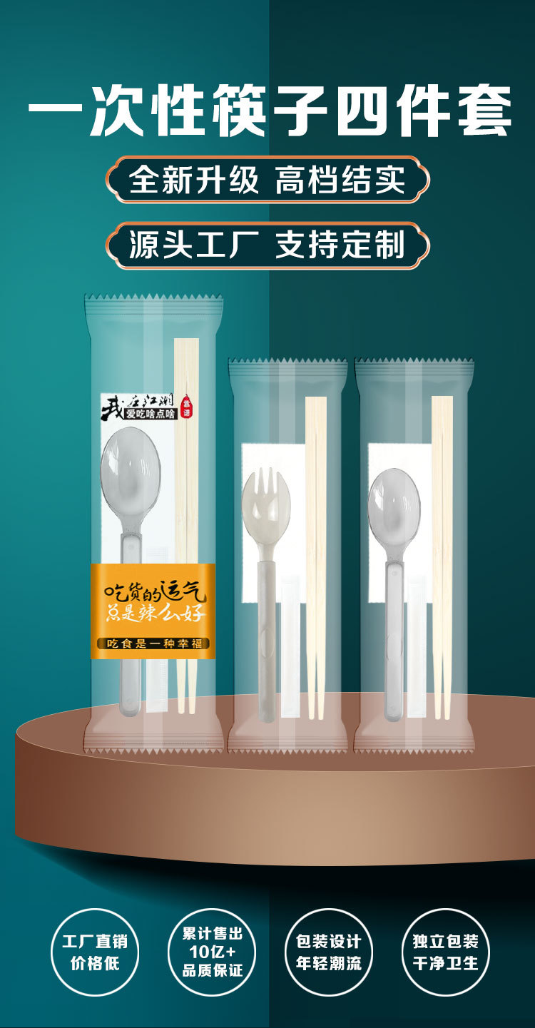 Одноразовые палочки для еды, набор из четырех предметов, индивидуальные коммерческие палочки для выноса, оптовая упаковка