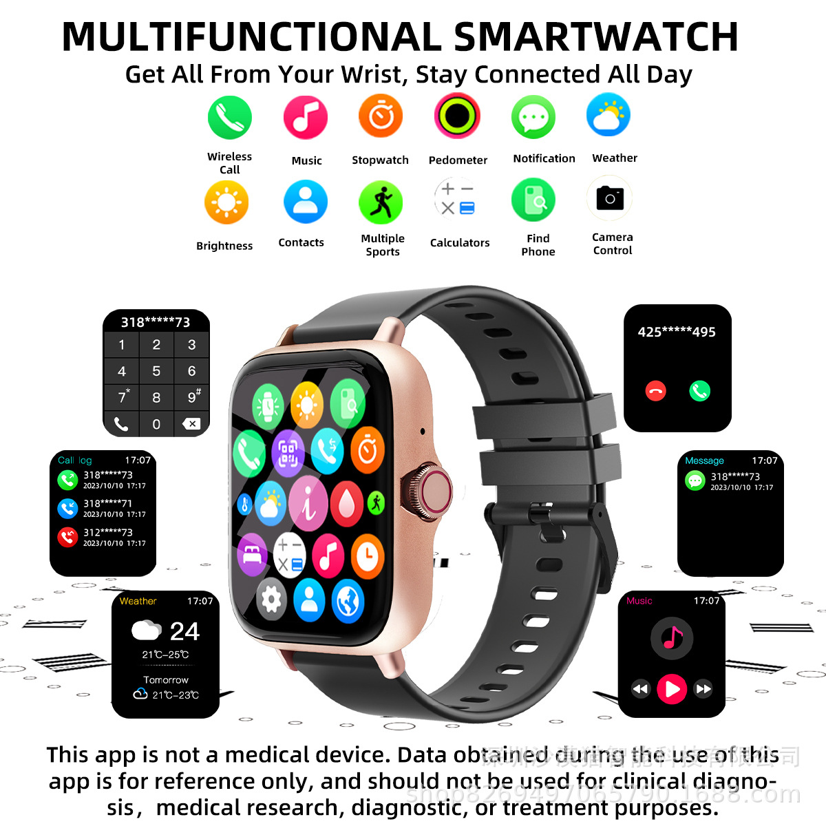 Умные часы с Bluetooth вызовом, шагомер, спортивный браслет, камера, музыка, многофункциональные спортивные и здоровые функции