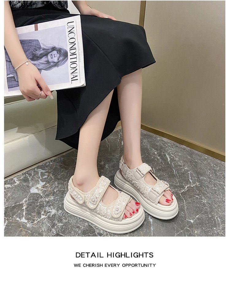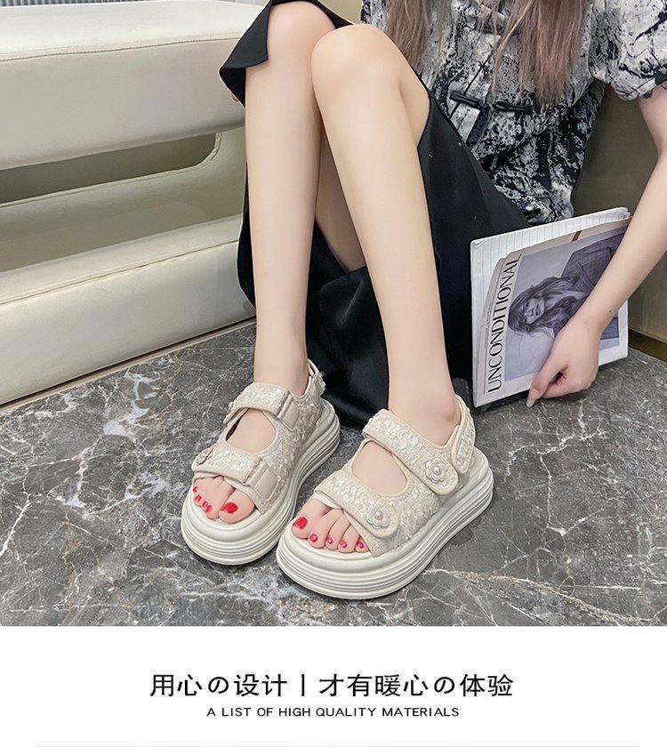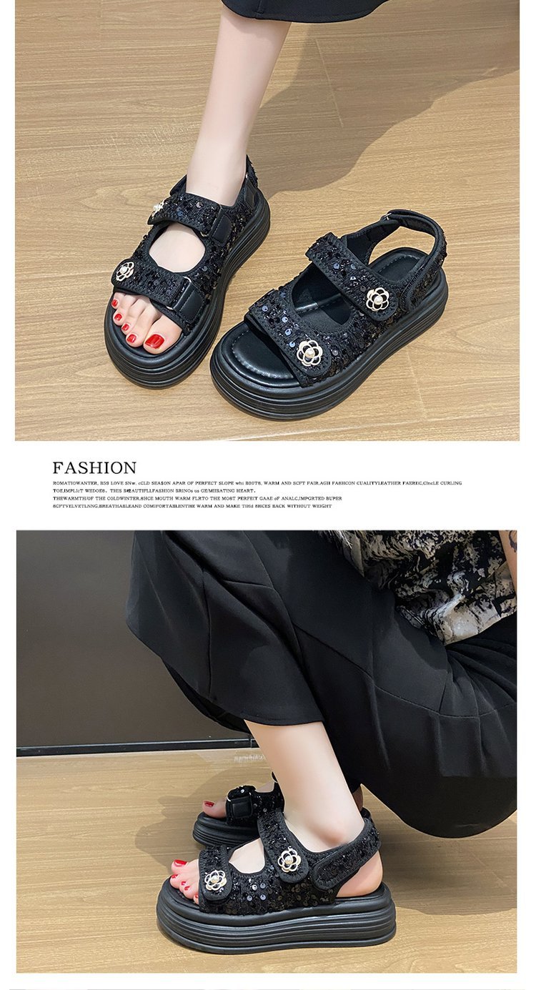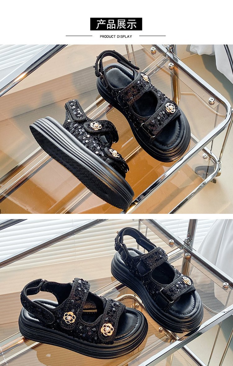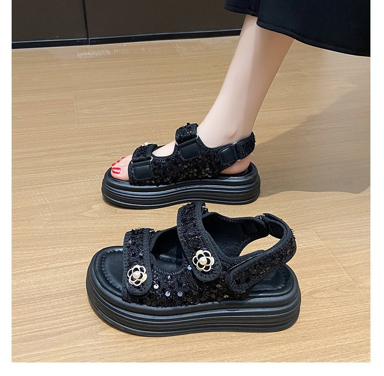 Черные сандалии с толстой подошвой для женщин 2025 весна новые повседневные универсальные спортивные удобные пляжные туфли