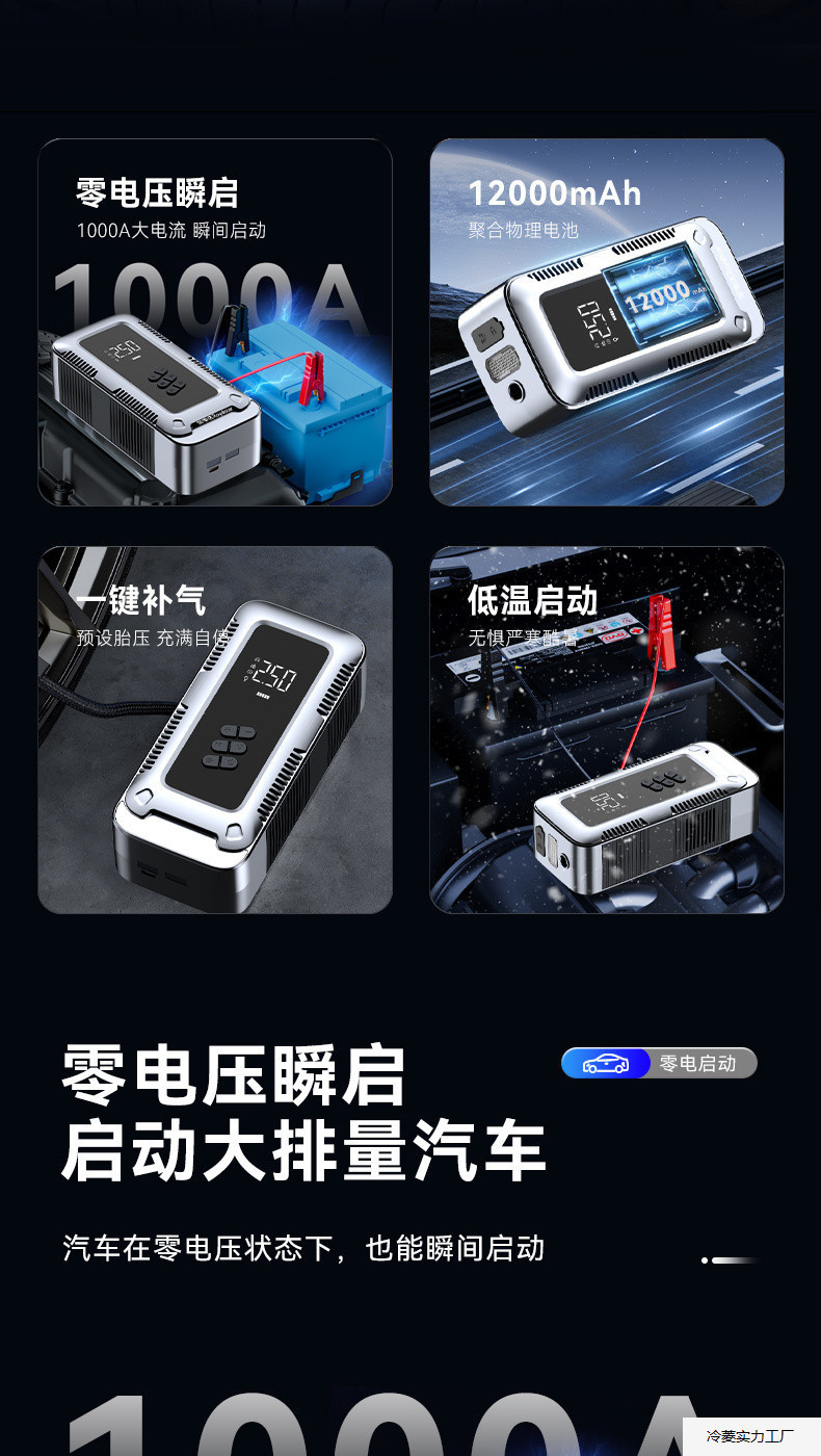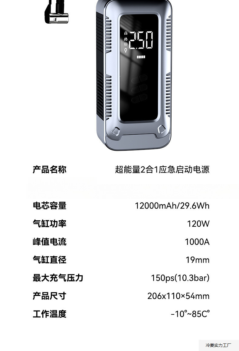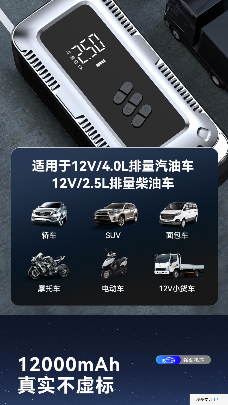 Автомобильный воздушный стартер, универсальный, цифровой дисплей, многофункциональный насос для зарядки и освещения