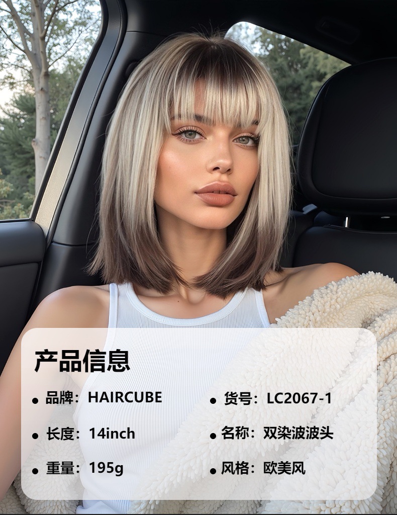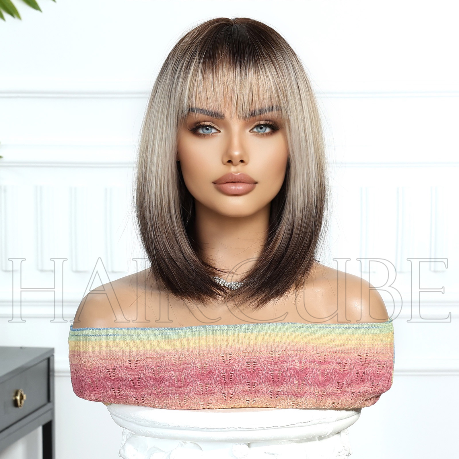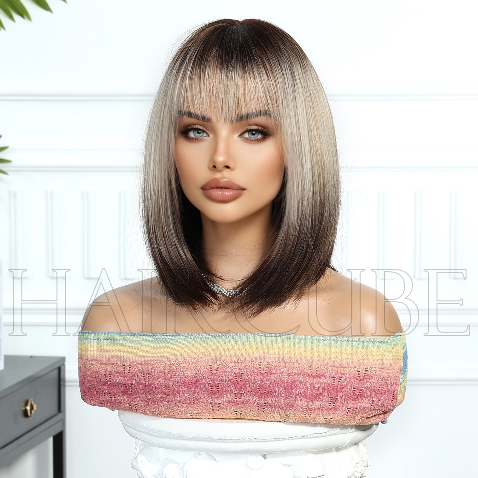 Парик с головным убором bobo, европейские и американские градиентные прямые волосы, в наличии, популярный парик с челкой, короткие прямые волосы