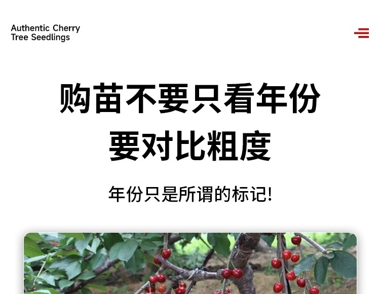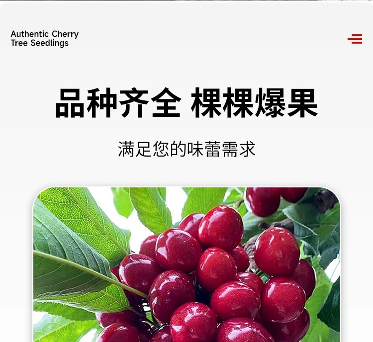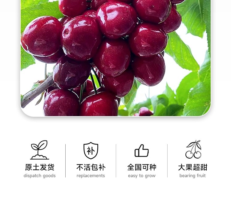 ![]() | 5-year-old grafted seedlings (3cm thick, with bifurcations) can bear fruit in the same year 0.5-1.0kg | Cherry | ¥38.8 / ≈ 469 ₽ | 988888 | 5888462026371 | |