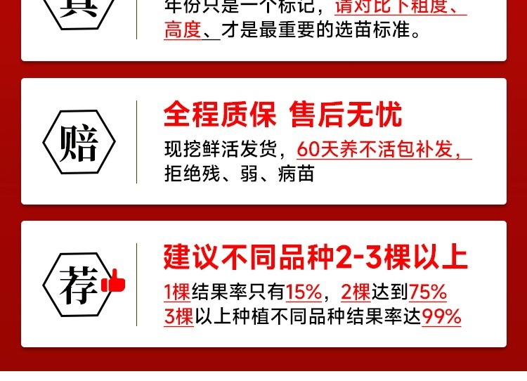 ![]() | 11-year-old grafted seedlings (8cm thick, shipped with bifurcations and soil balls) can bear fruit in the same year 3-3.5kg | Beautiful morning | ¥698.8 / ≈ 8 443 ₽ | 988888 | 5888462026442 | |