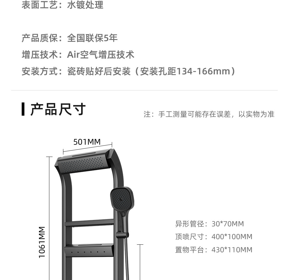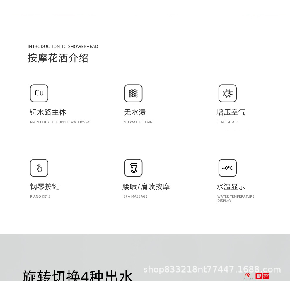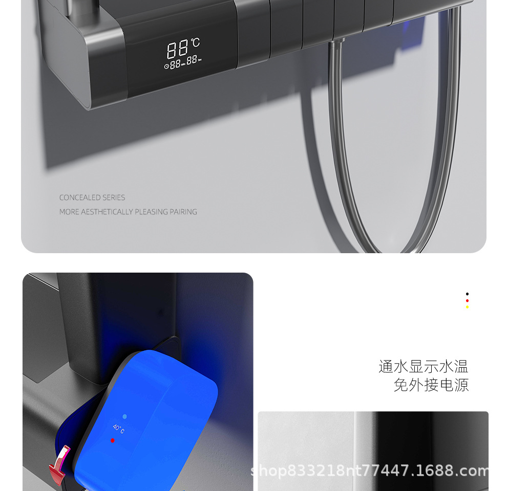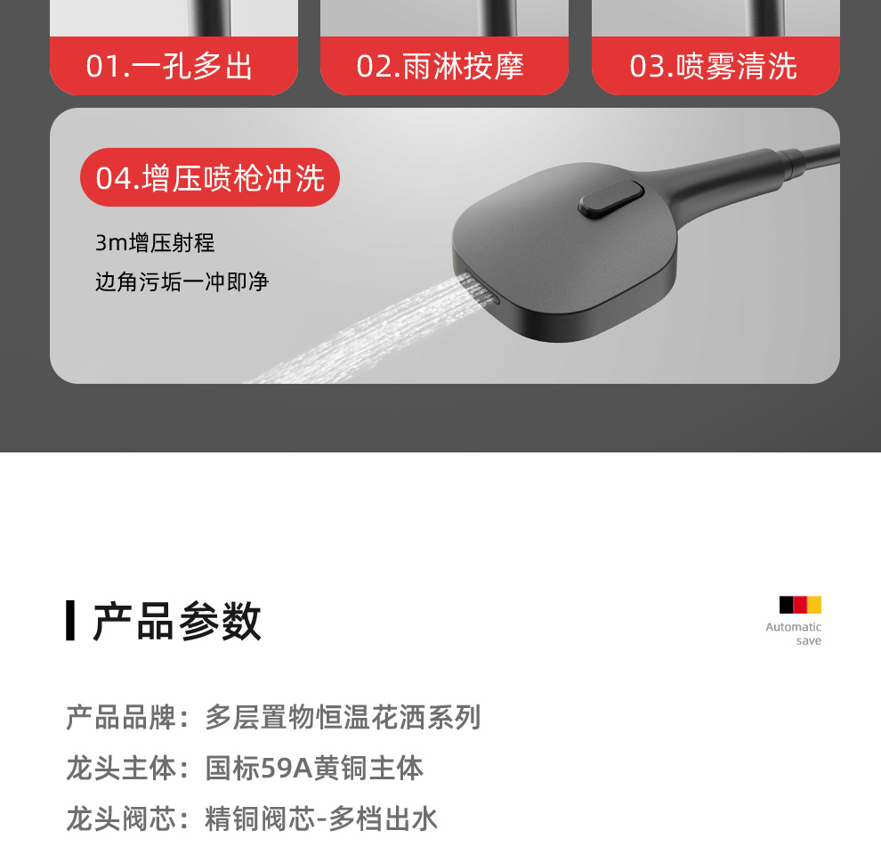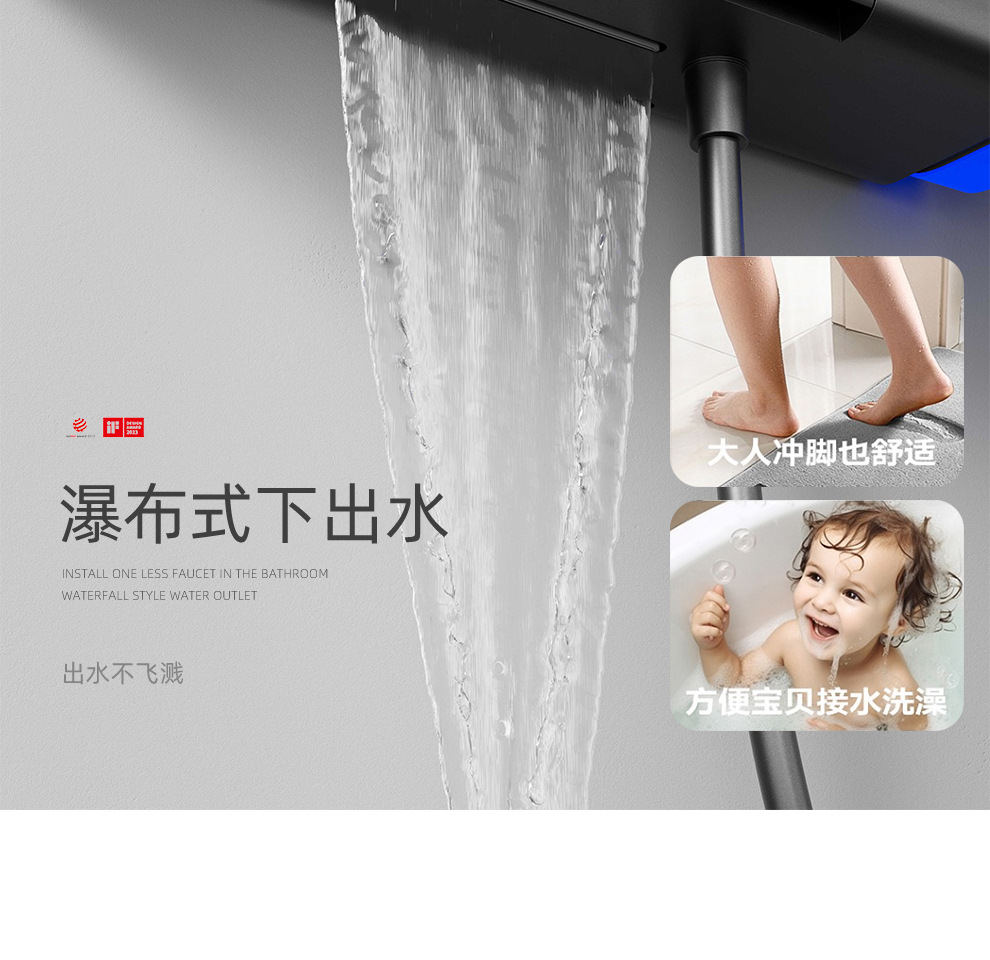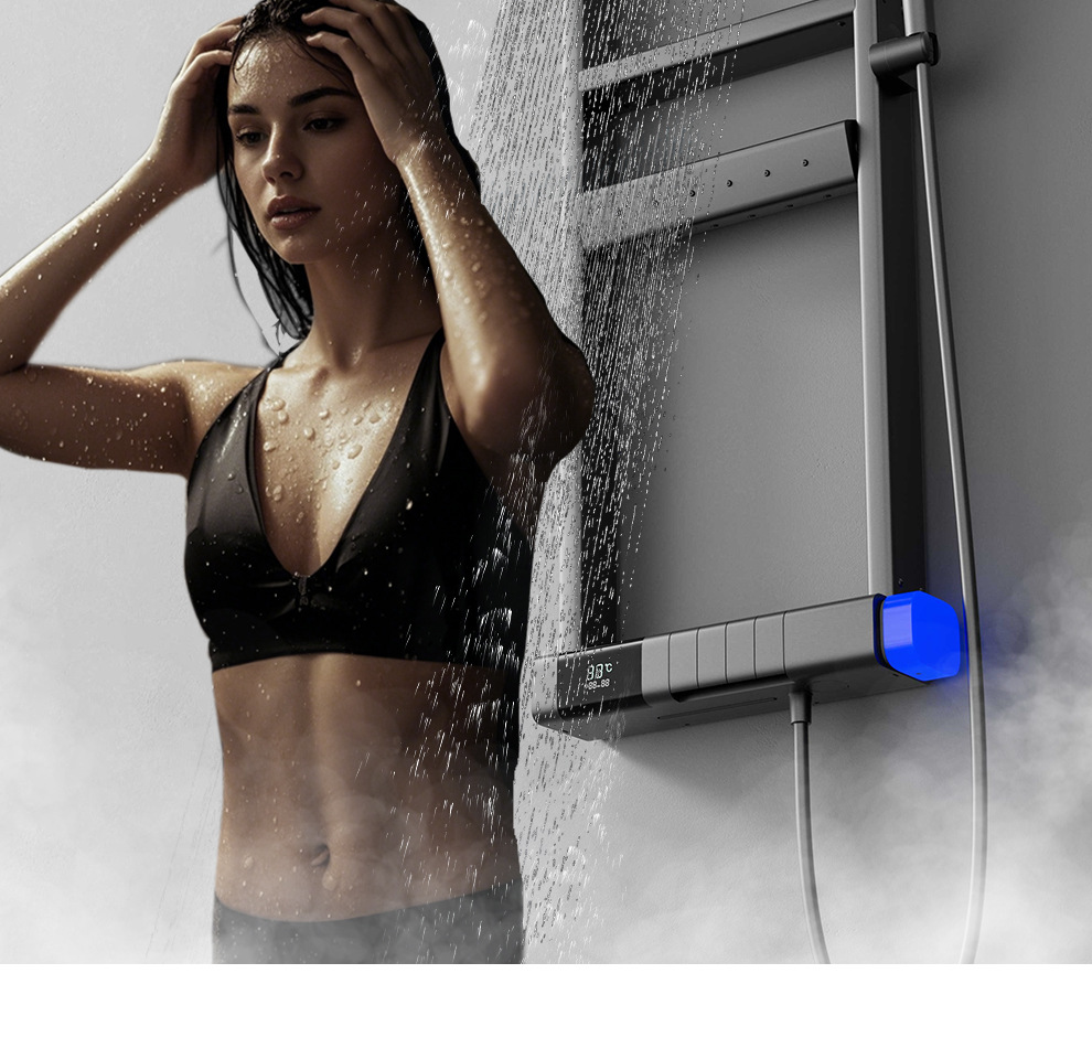 De Heaton 6090 Суперзаряженный водопад Интеллектуальный душевой комплект с постоянной температурой, распылительная головка, пистолет, пепельный цвет, домашнее хранение, экран для душа
