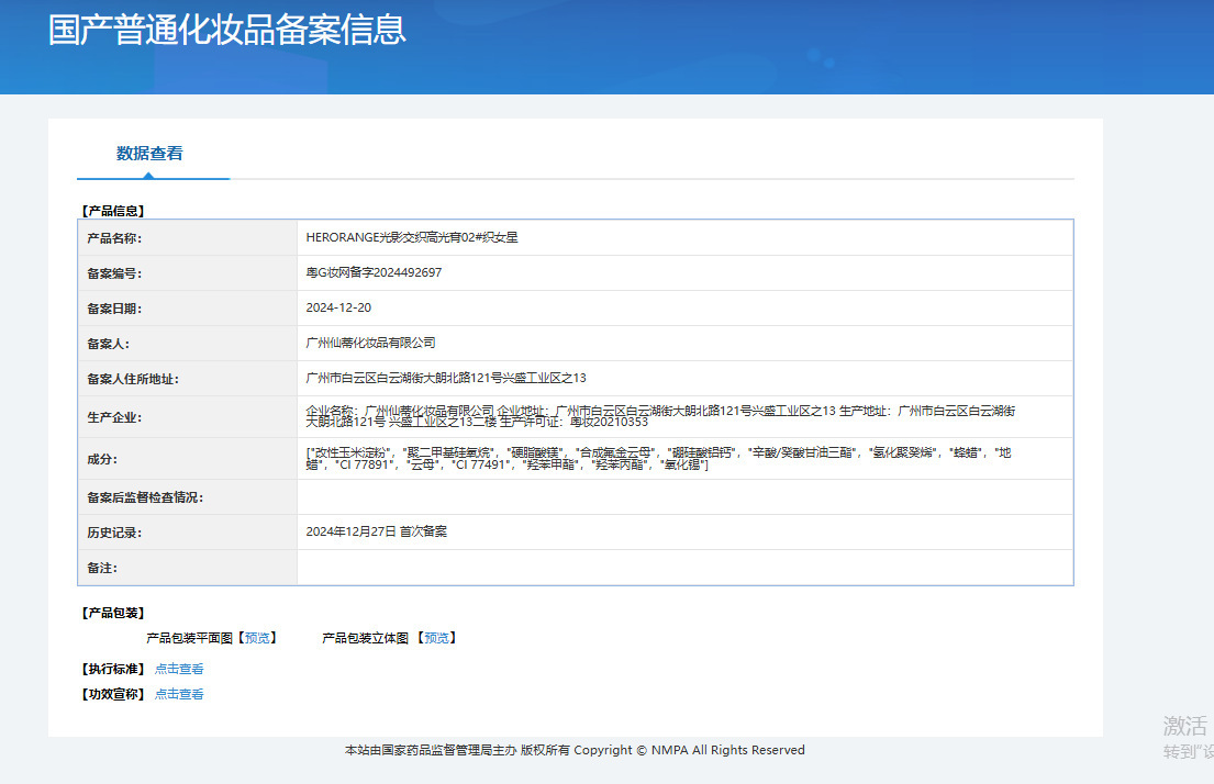 Номер сертификата регистрации дополнительных косметических средств Guangdong g makeup net preparation2024492598