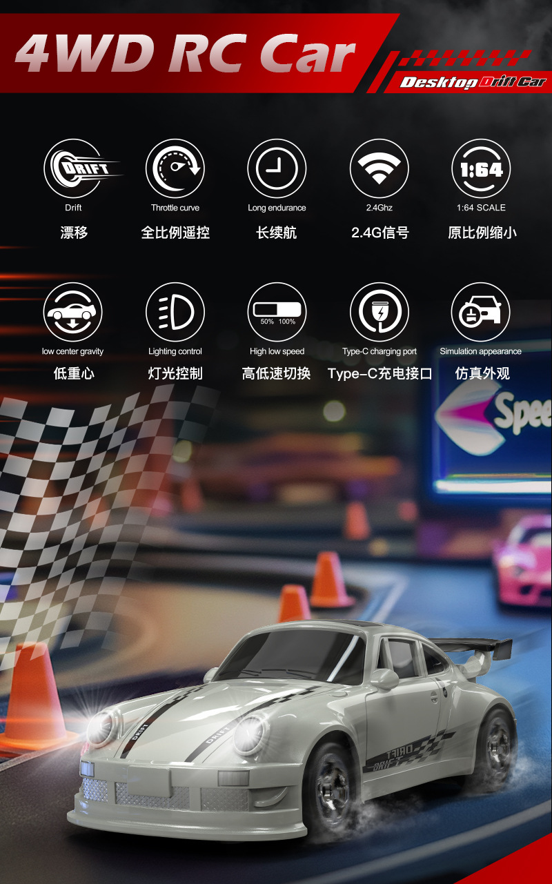KF20 кросс-бордовый настольный мини радиоуправляемый гоночный автомобиль 1:64 дрифт-кар 2.4G полный масштаб акселератора RC четырехколесный привод игрушечный автомобиль