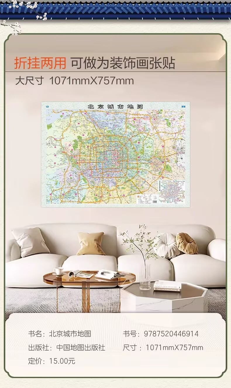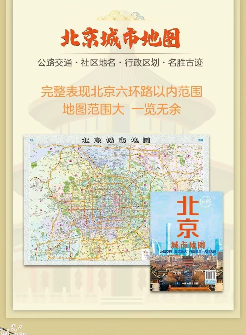Название книги Newly compiled beijing city map leaflet foldable paper picture bag size 1068*745mm