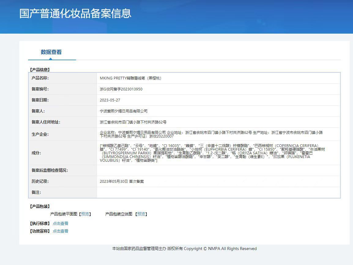 Номер сертификата регистрации дополнительных косметических средств Zhejiang g makeup net preparation2023013950