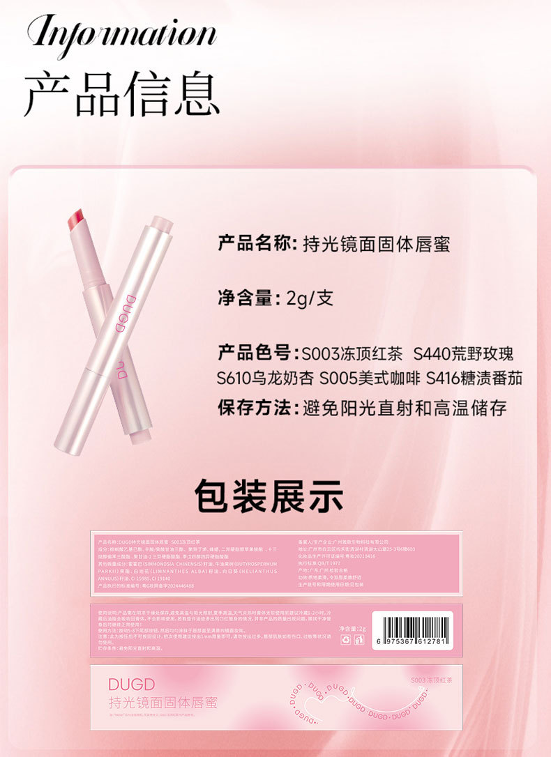 ![]() | Dugd lip gloss: s416 candied tomato | 2g | 1шт: ¥3.75 | 14761 | 5921874611448 | |
