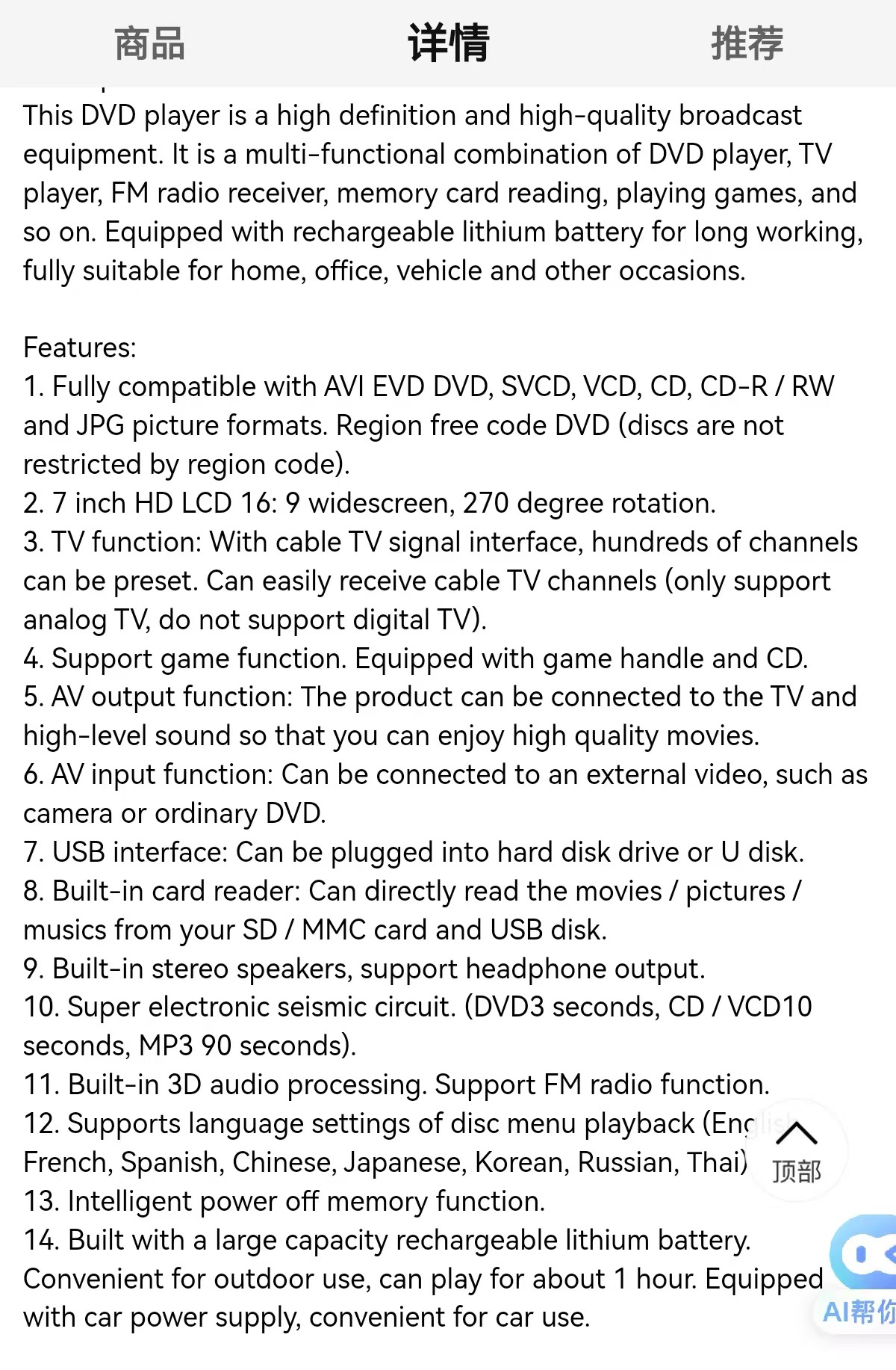 Популярный экспортный продукт, ультратонкий высококачественный мобильный DVD-плеер 10.1 дюйма с ТВ, портативный EVD-плеер
