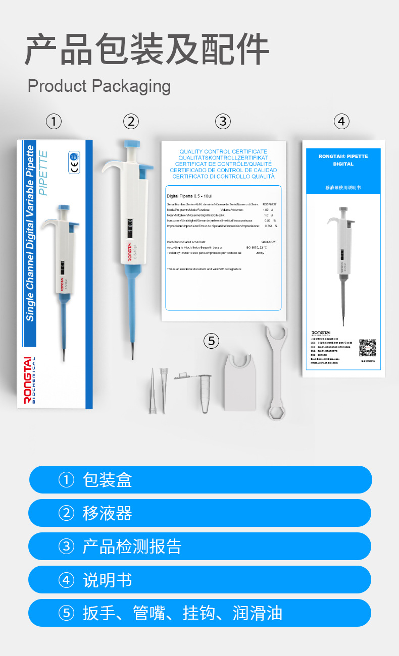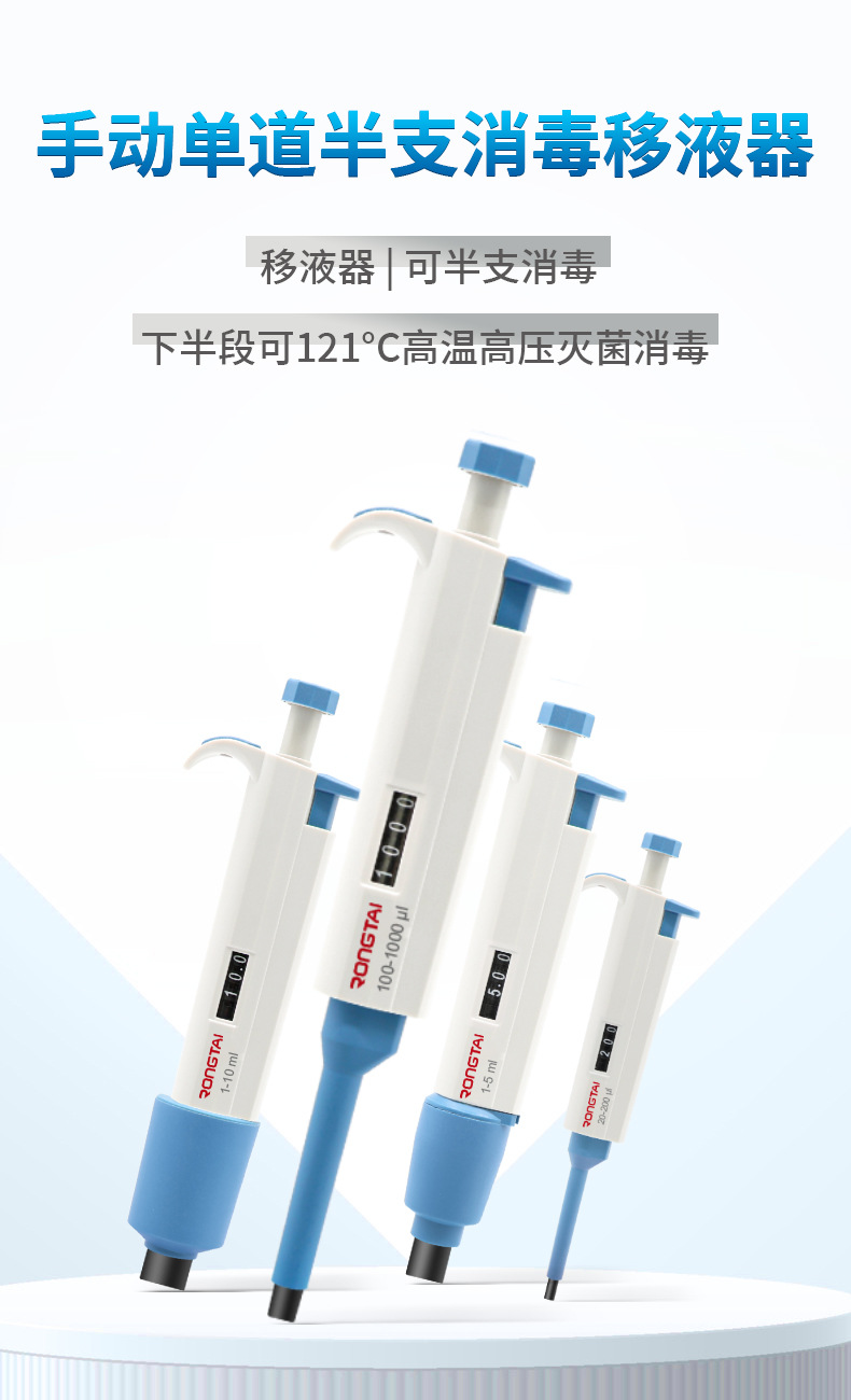 Пипетка Rongtai, пипеточный насос, половинная или полная, стерилизованная, ручная, одноканальная, регулируемая, для отбора проб, с цифровой регулировкой