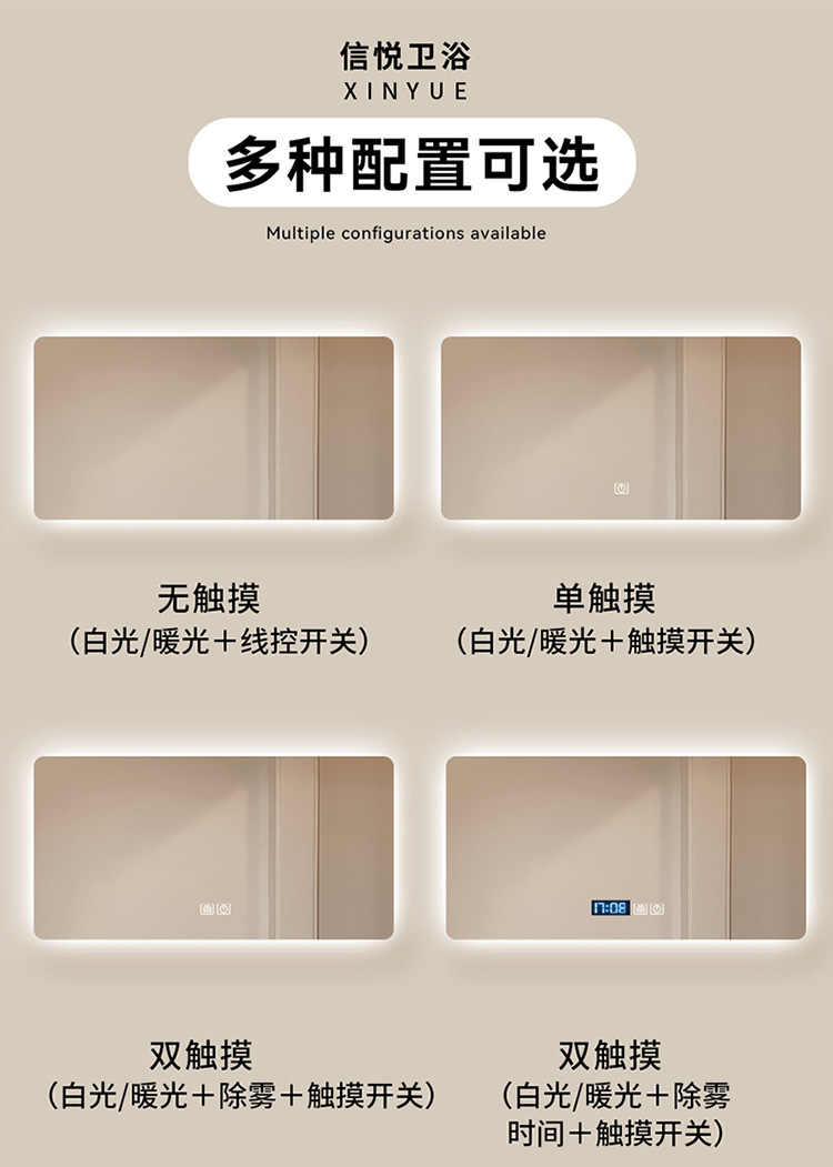 ![]() | Type a warm light + defogging + touch switch (stepless dimming) | 75cm*120cm square | ¥309.0 / ≈ 3 727 ₽ | 43994 | 5727275088564 | |