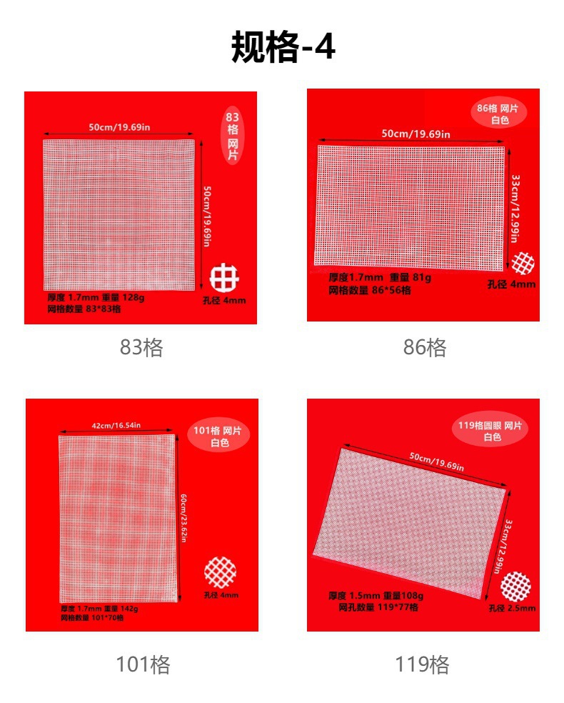 ![]() | 83 grid square mesh | ¥2.8 / ≈ 34 ₽ | 100000 | 5728813649276 | |