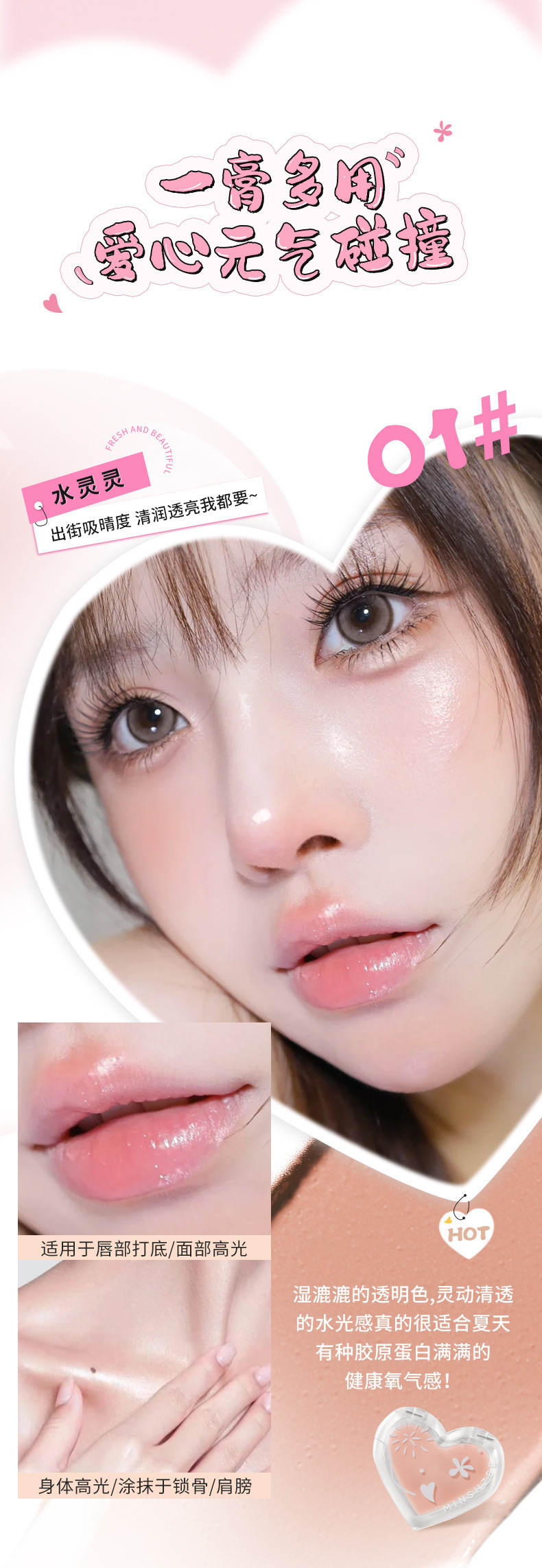 Крем для лица Mingxizhi Yuanqi с эффектом сияния, осветляющий хайлайтер, ремонтирующий румяна, интегрированная палитра, крем с водяным сиянием