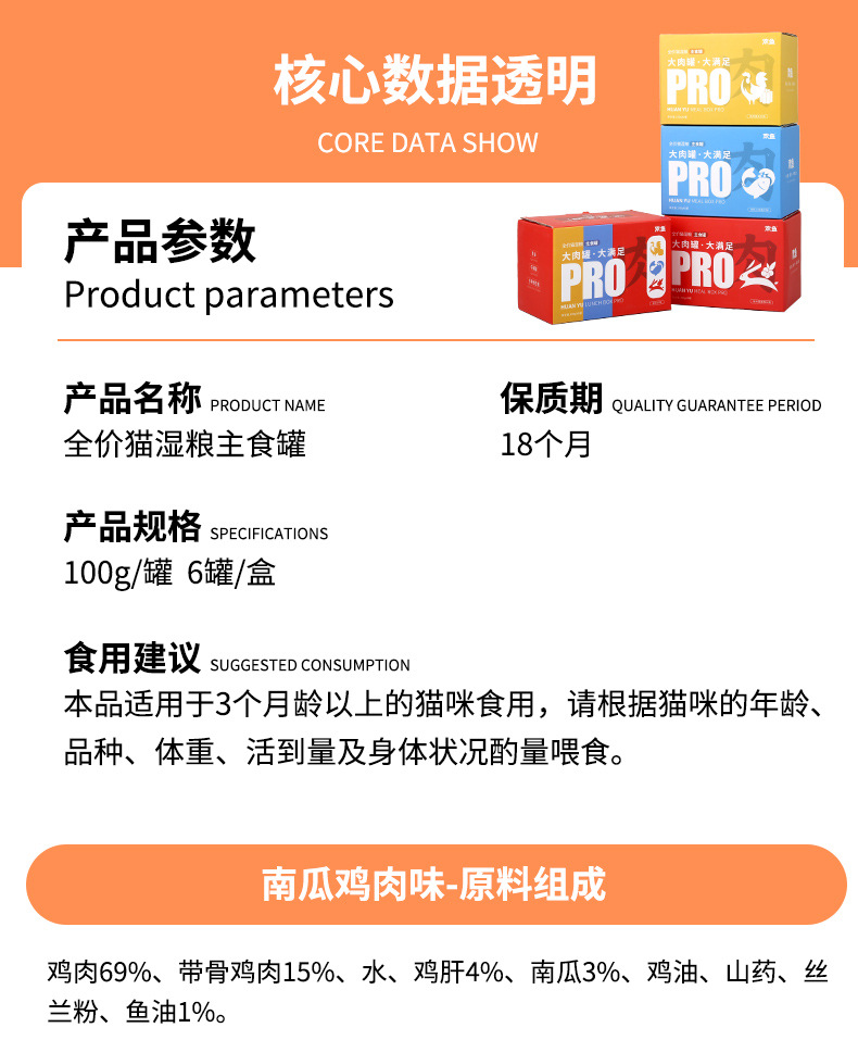 ![]() | 1 box [100g*6 cans] | Chicken and pumpkin flavor | 1шт: ¥17.90, 20шт: ¥17.50, 100шт: ¥16.90 | 61068 | 5729111613891 | |