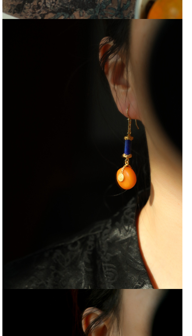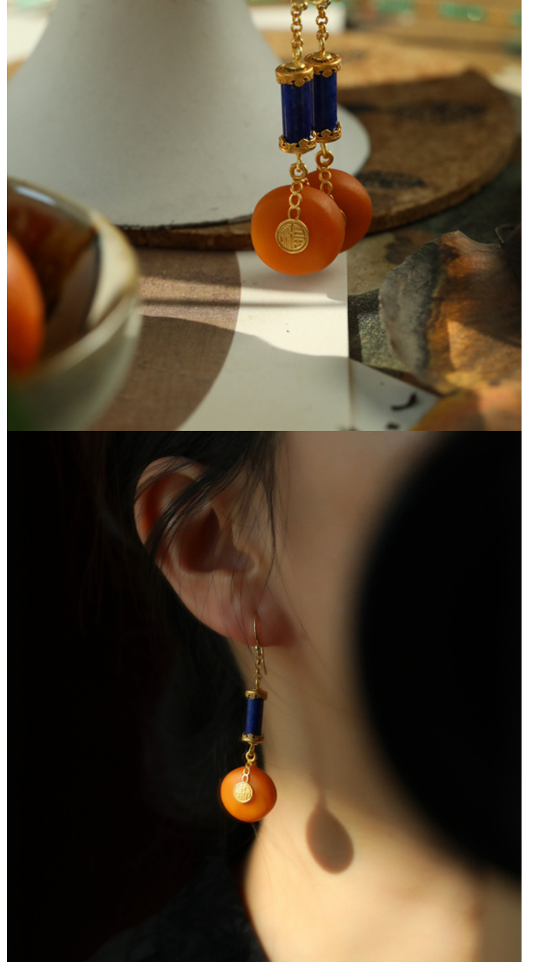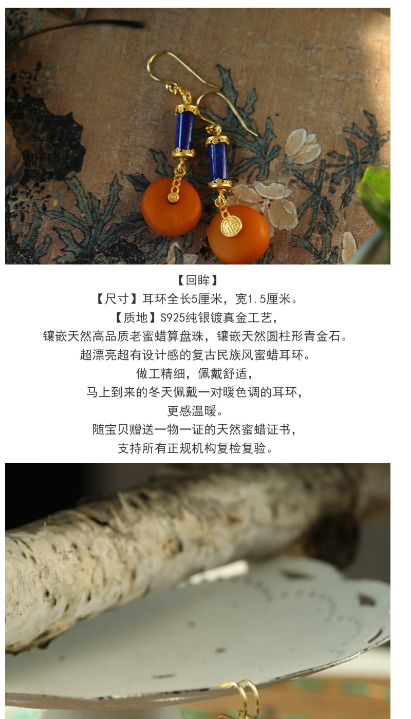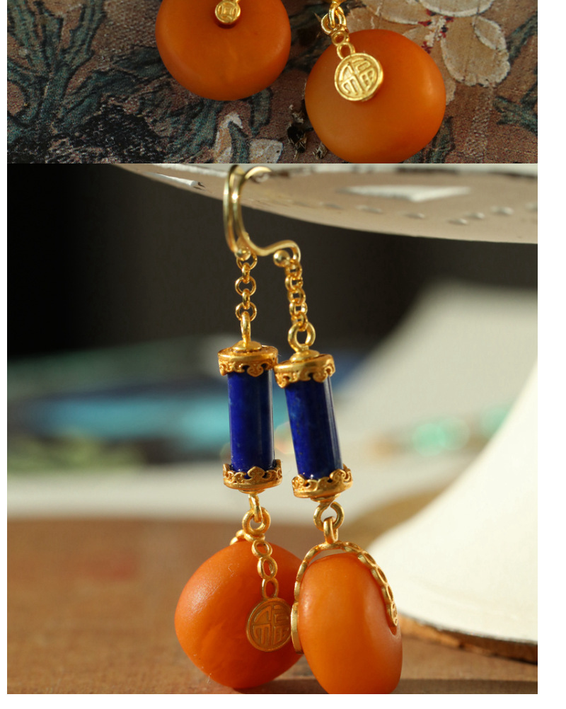 Старинные серьги из натурального янтаря, пчелиного воска и лазурита в этническом стиле для женщин