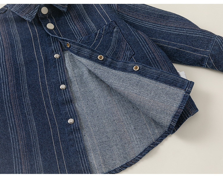 Детская одежда Yubao весенний кардиган для мальчиков корейский стиль с лацканами универсальная полосатая джинсовая рубашка