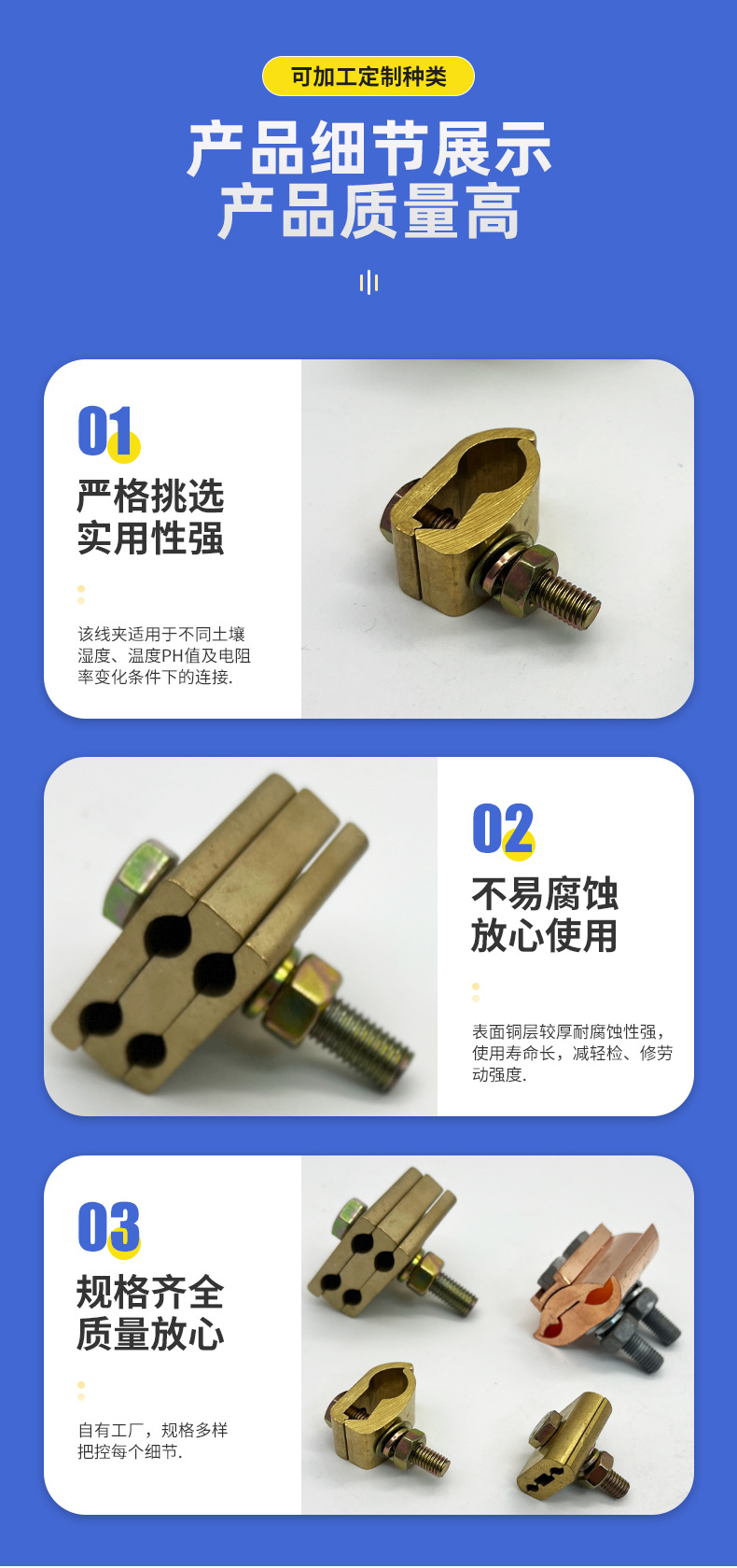 Новый зажим из латуни для молниезащиты, многоразмерный зажим для провода
