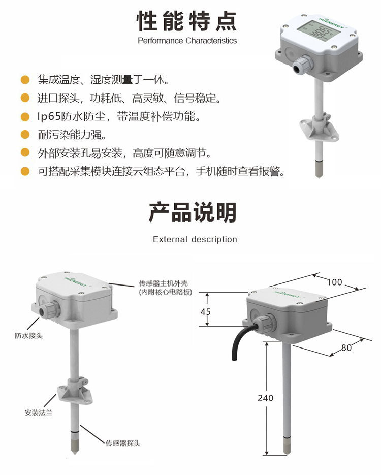 Датчик температуры и влажности для воздуховодов, Rs485, беспроводной, промышленный, устойчивый к высоким температурам, детектор температуры и влажности