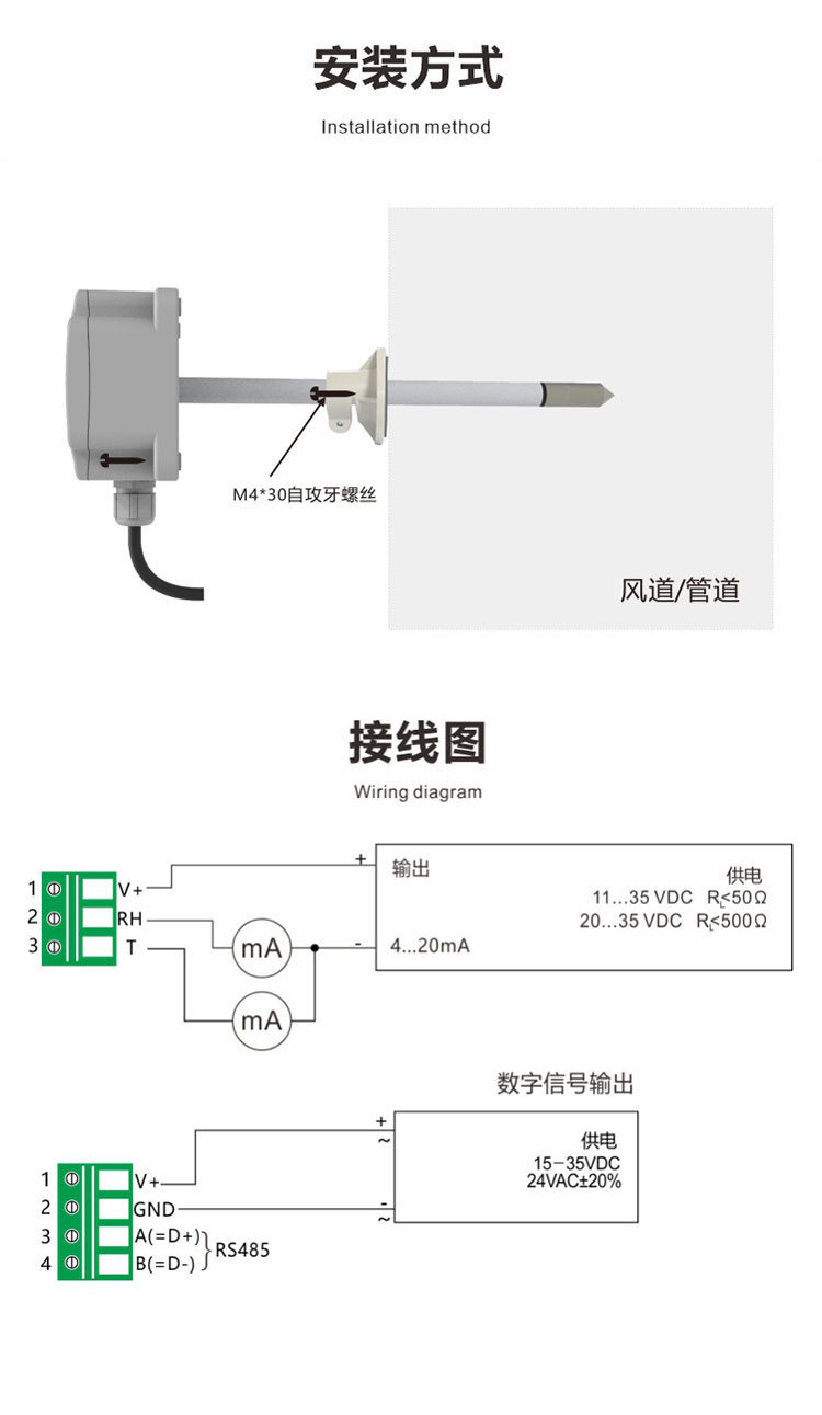 Выходной сигнал RS485、4-20mA