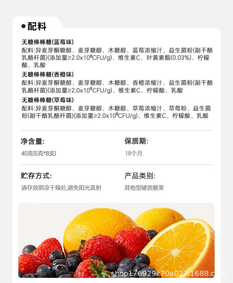 Леденец для детей витамин C Duoduo 0 сахара вкус черники апельсина клубники фруктовый леденец