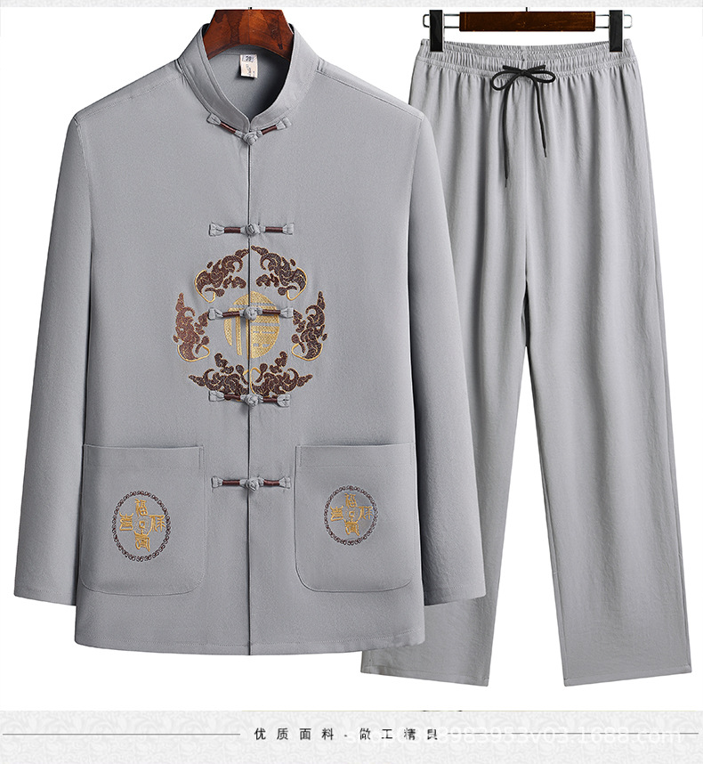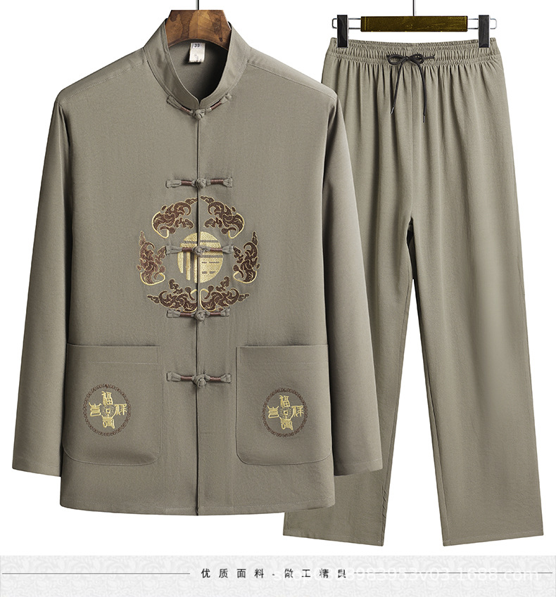 Костюм Танг с длинным рукавом для мужчин, весна и осень, рубашка с длинным рукавом для мужчин, костюм для дедушек, Ханьфу, костюм для утренних упражнений