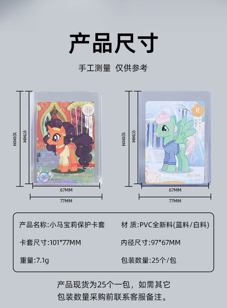 通用包装是25个一包或者10个一包,亲们在下单时候按整包拍哦,页面上的单价是一个卡套的价格,需要多少数量就下多少数量。请不要零散拍,不好发货。如有包装数量要求或定制彩盒请先联系客服沟通备注哦。