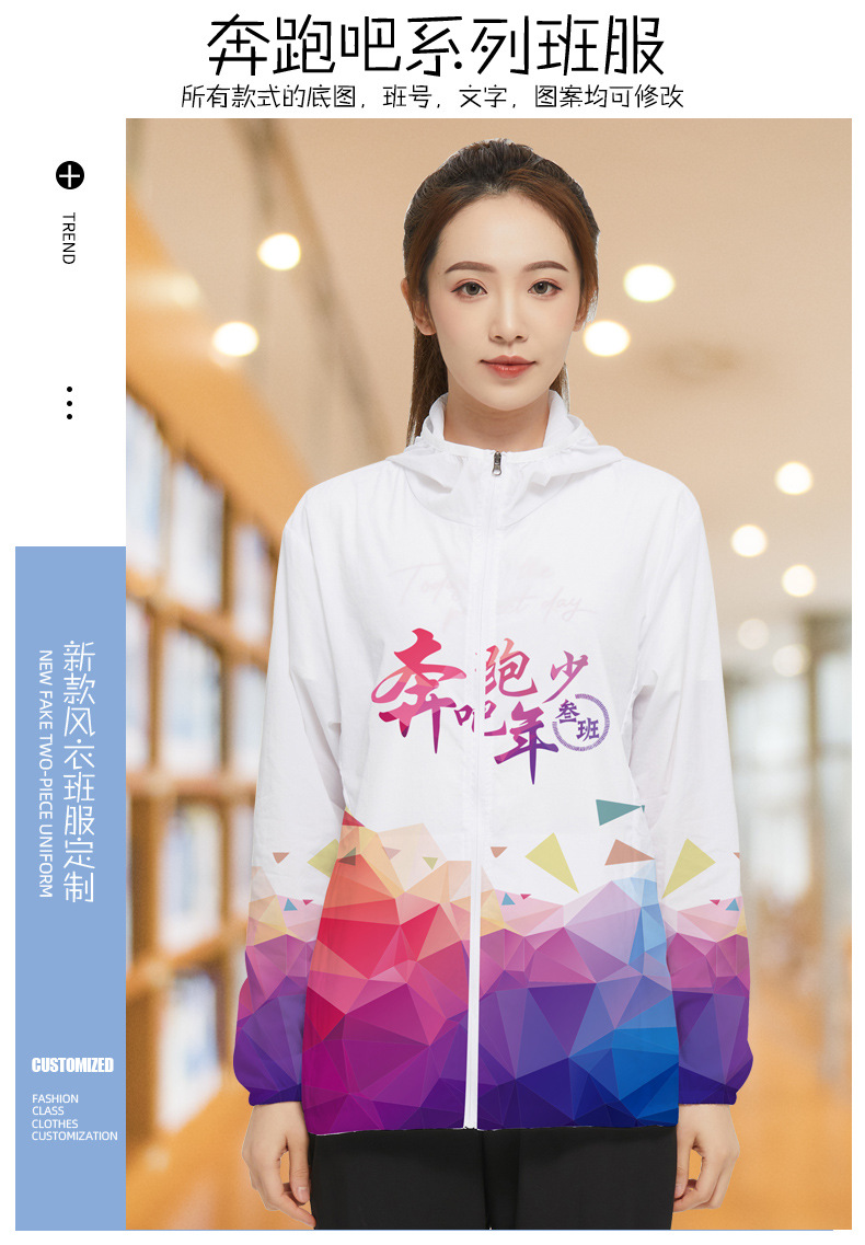 运动会班服定制卫衣连帽风衣外套小学生初高中工作服装套装印logo