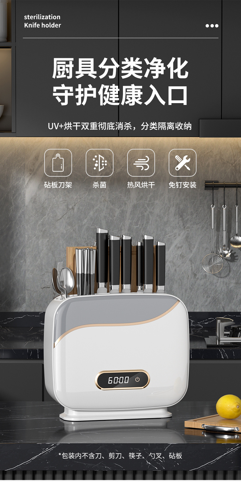 Многофункциональная настенная подставка для дезинфекции ножей, ультрафиолетовая сушка, дезинфектор для хранения ножей и палочек