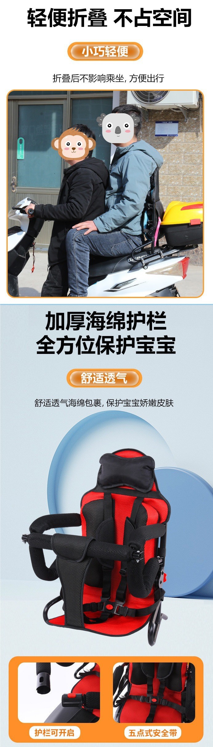 Электрический автомобиль заднее сиденье аккумуляторного скутера мотоцикла для детей и малышей 1-8 лет аксессуары для сидений