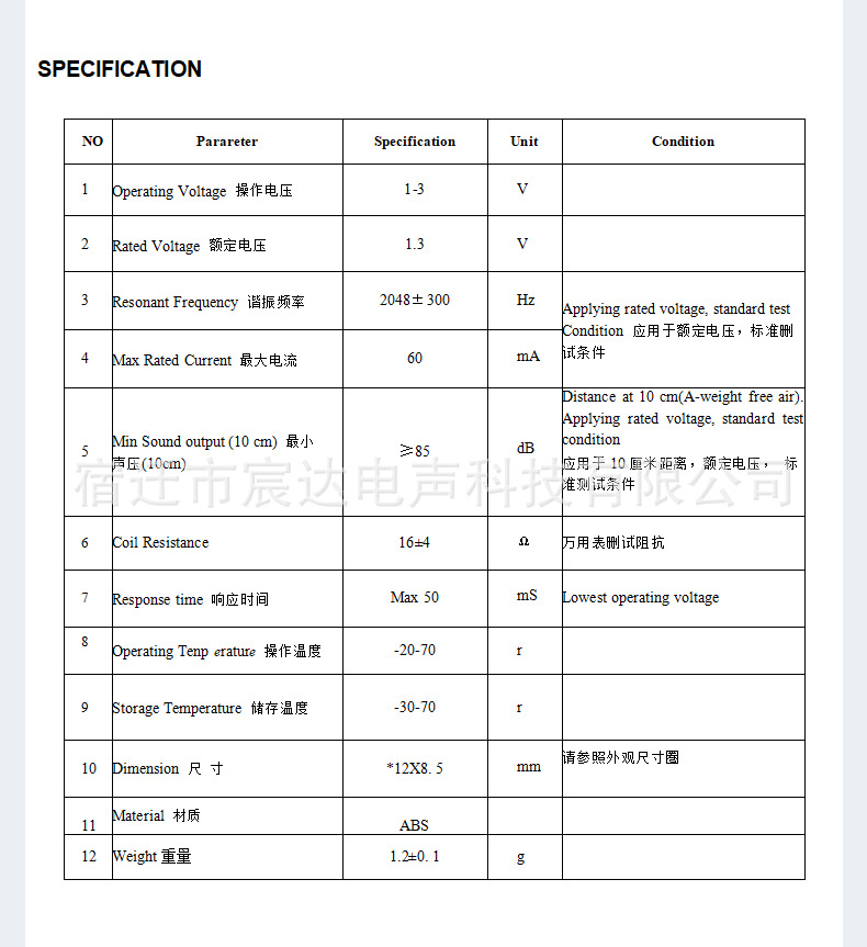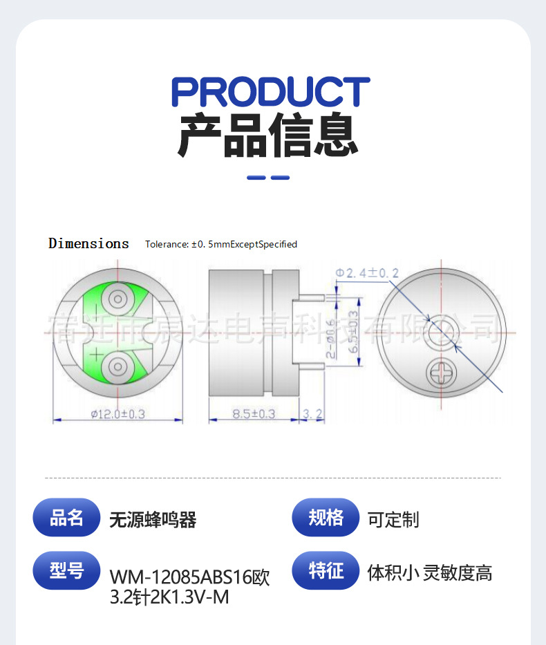 Прямые продажи WM-12085ABS16 Европа 3.2 пин 2K1.3V-M пассивный зуммер