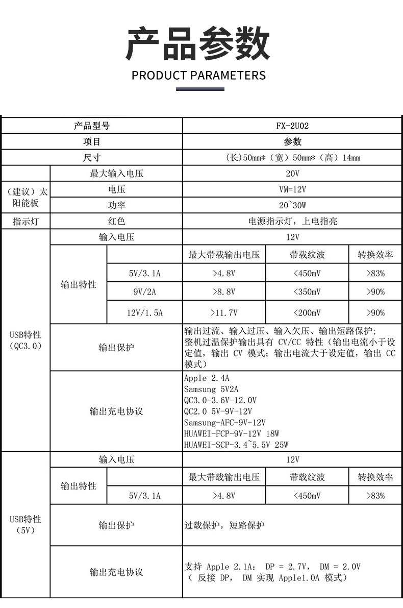 Солнечная складная панель, коробка соединений, регулятор FX-2U02 QC3.0 5V3A