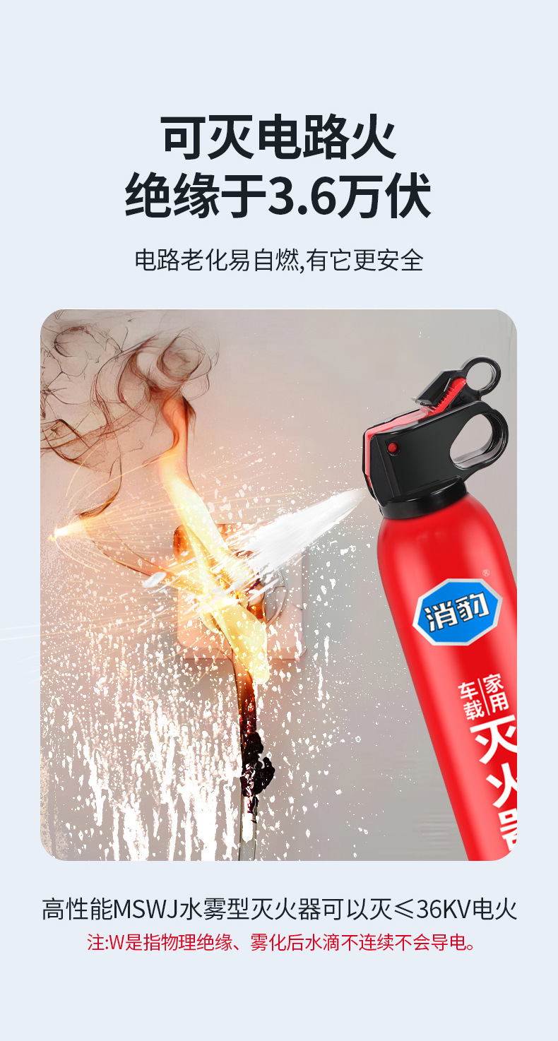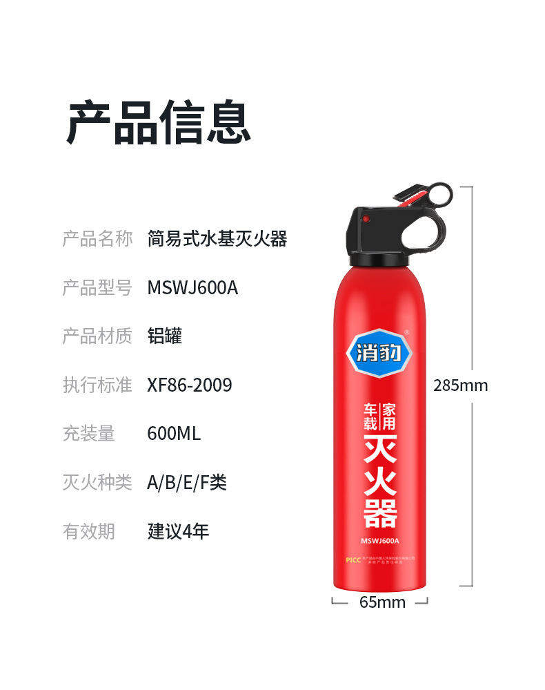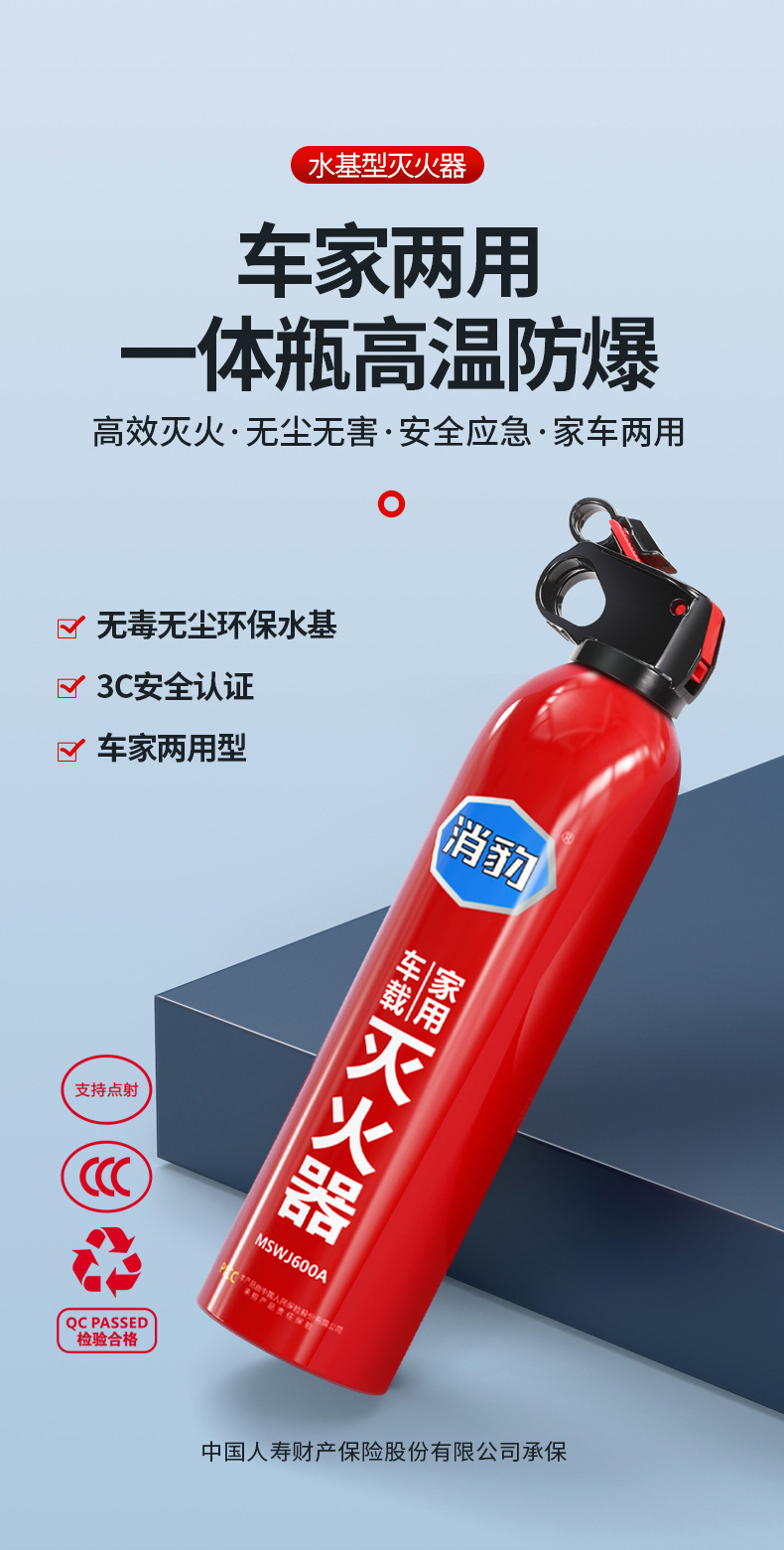 Огнетушитель для автомобиля 13B водный 600ML переносной для дома ежегодная проверка