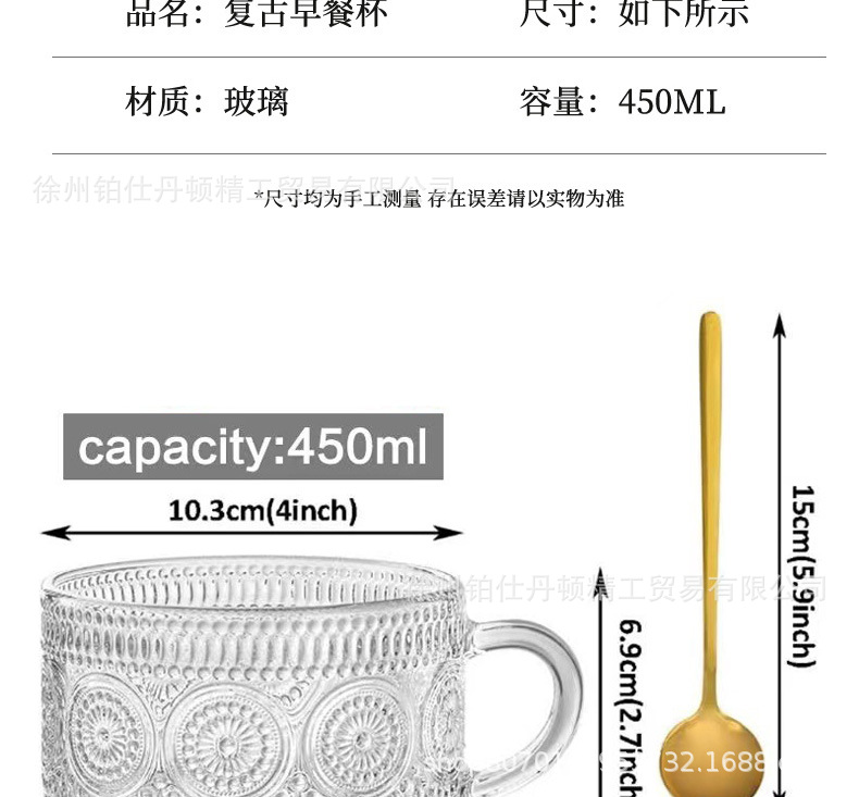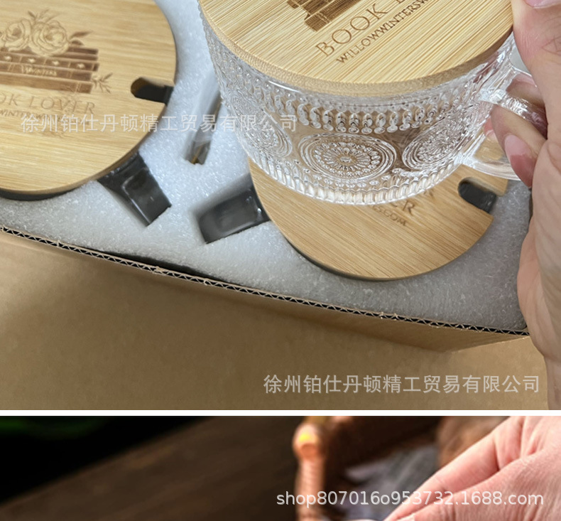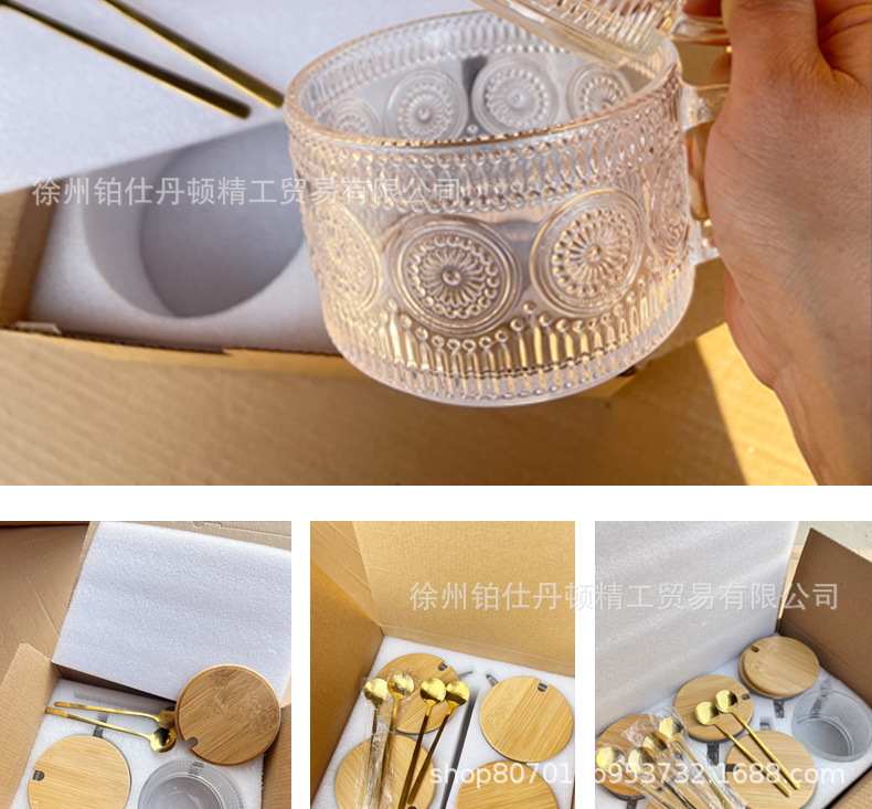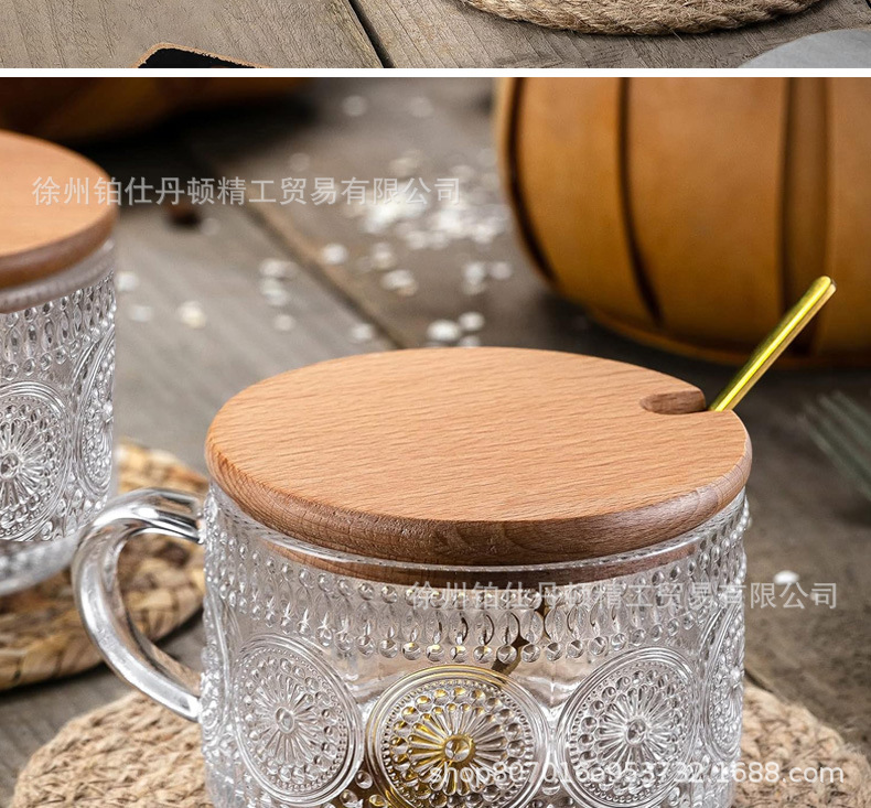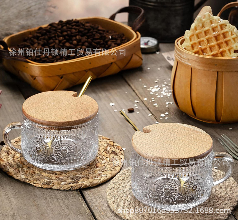 Винтажный стакан для овсянки Amazon, с рельефом, с крышкой и ложкой, стакан для молока, кофе