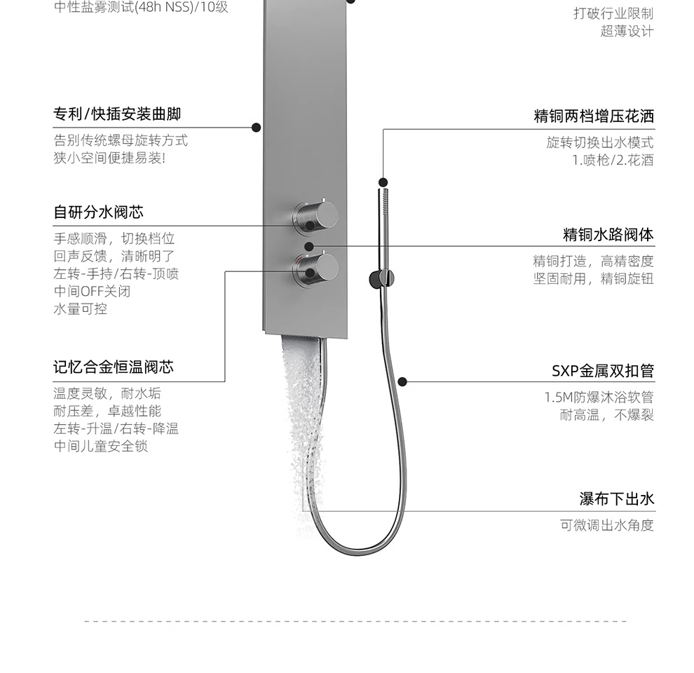 De Heaton 6093 Душевой комплект с постоянной температурой для туалета, легкая роскошь, суперзаряженный экран из нержавеющей стали 304, контроль температуры