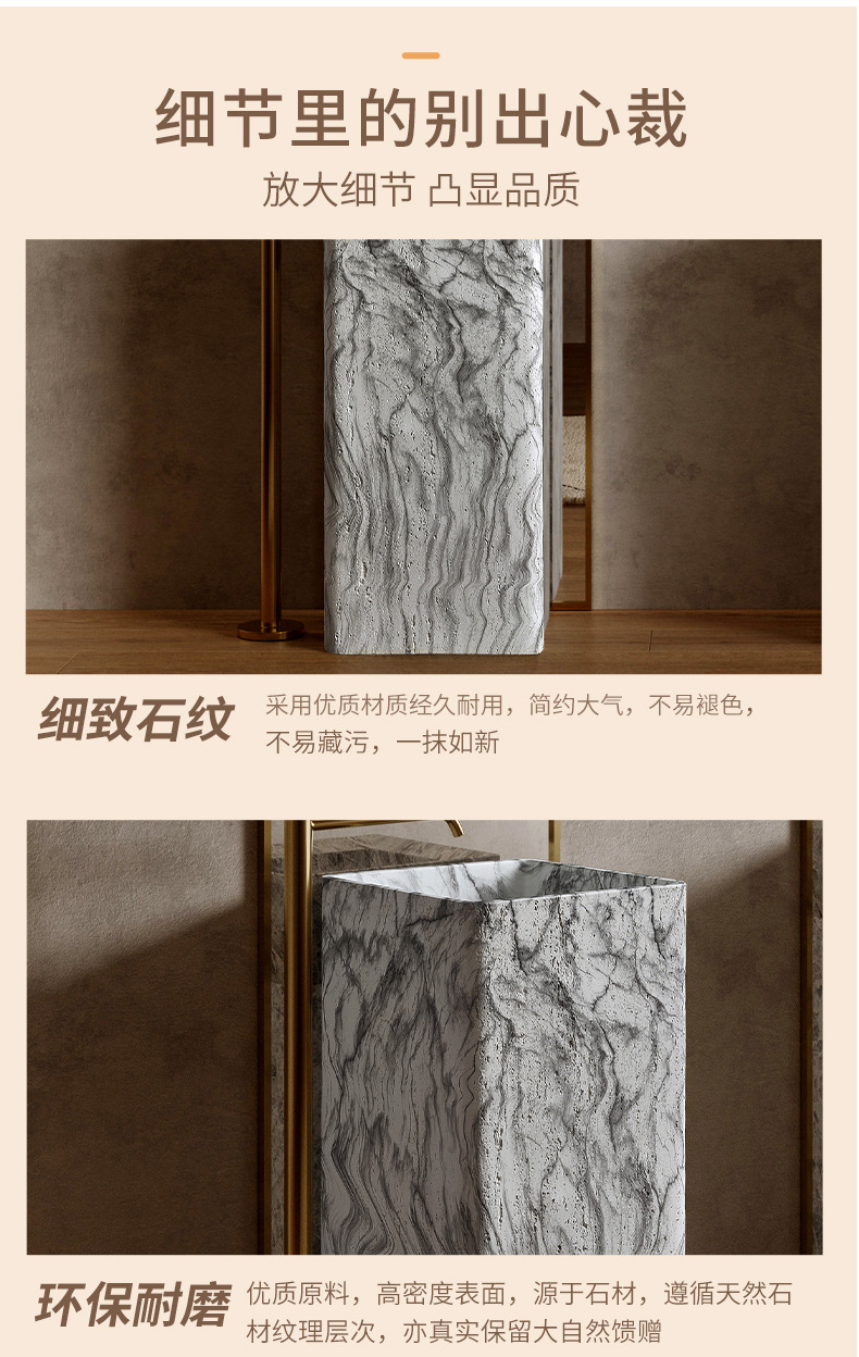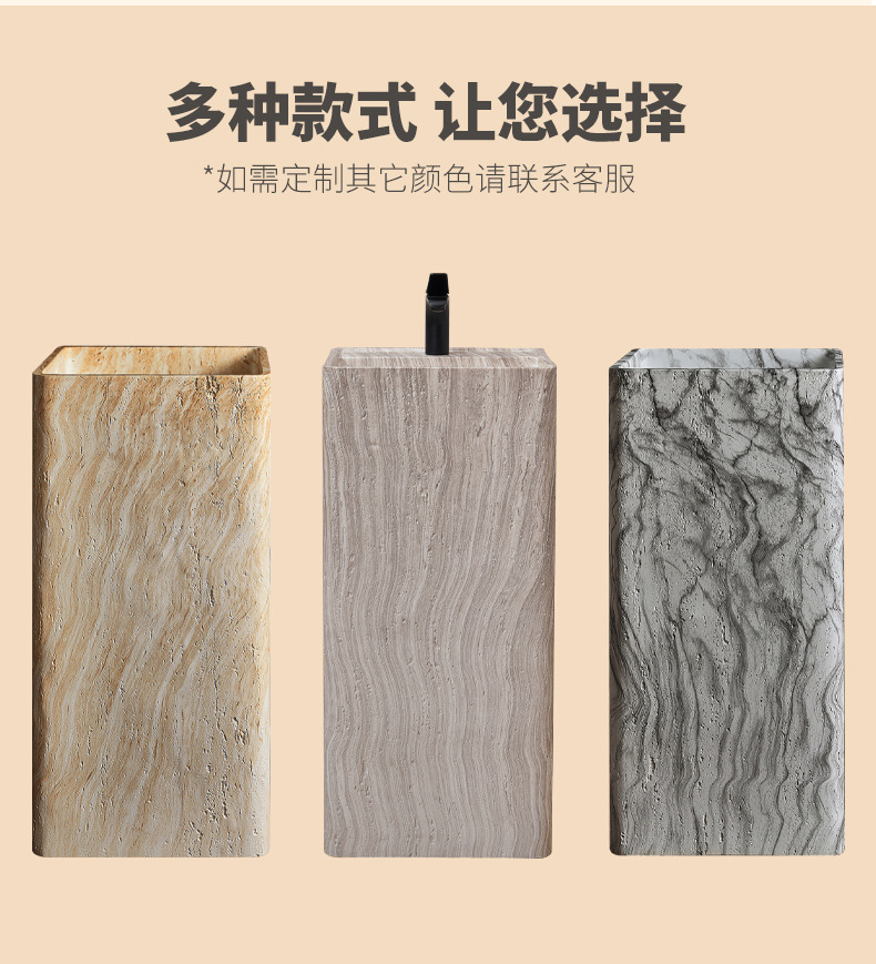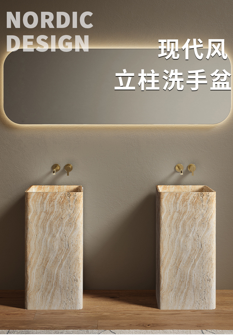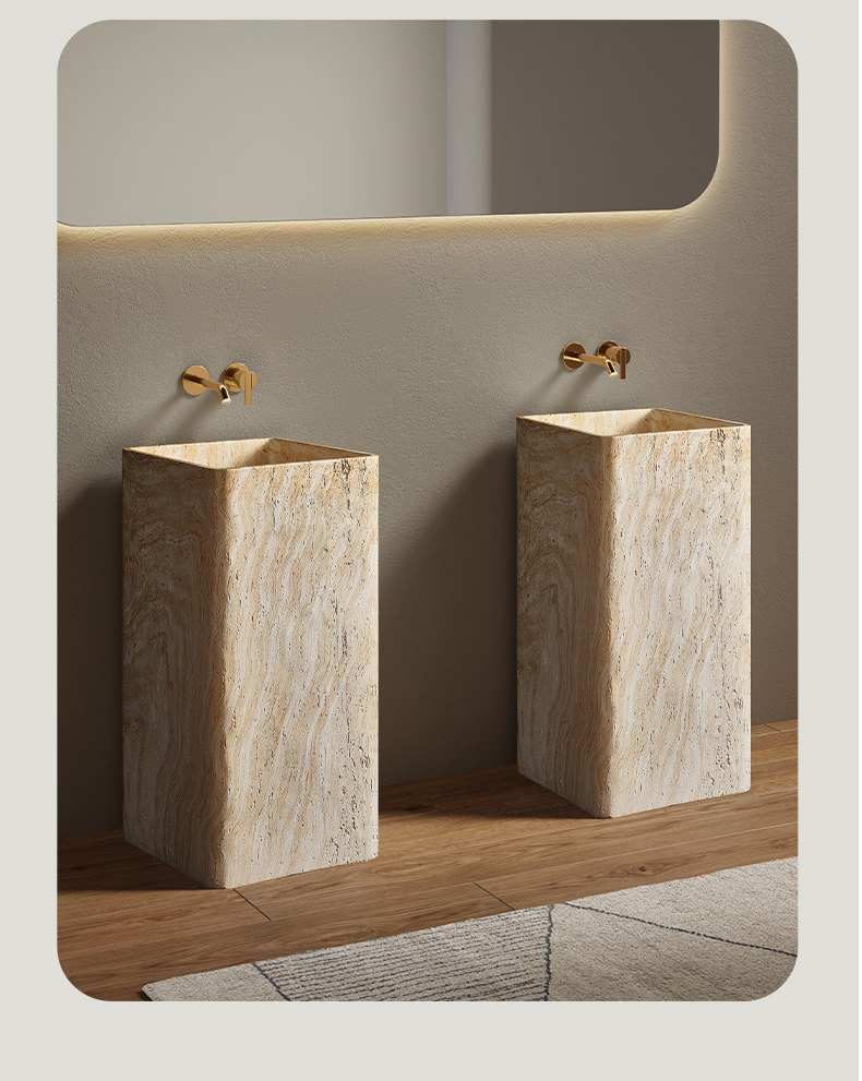 Минималистская пьедестальная раковина из искусственного травертина, интегрированная, напольная, имитация мрамора, дизайнерская раковина