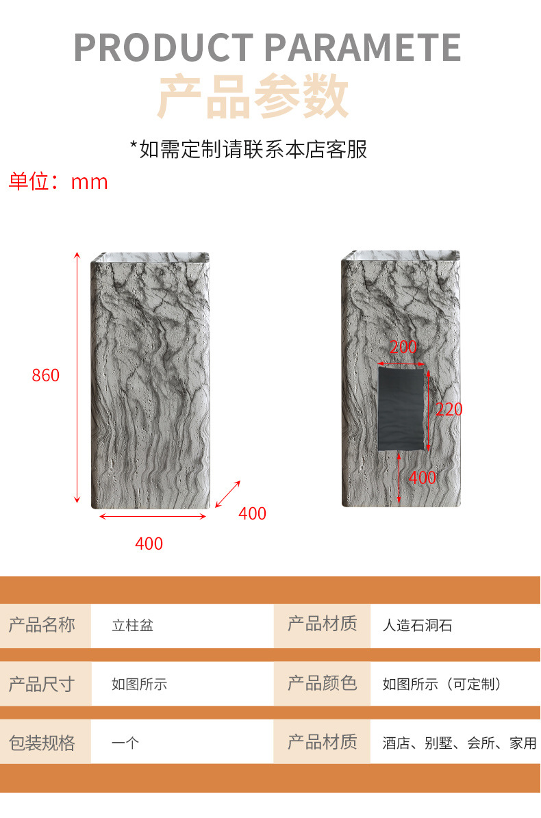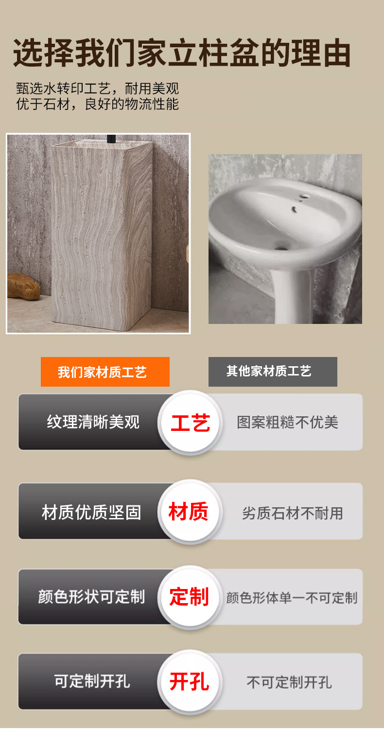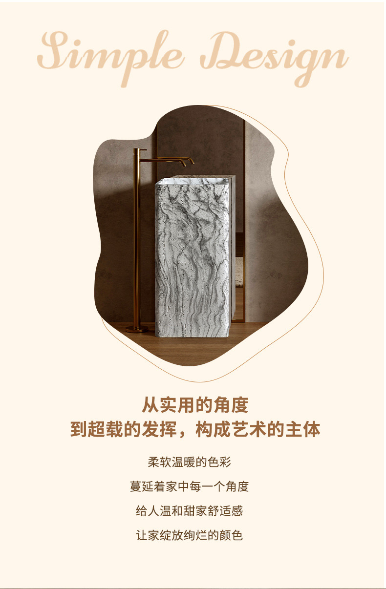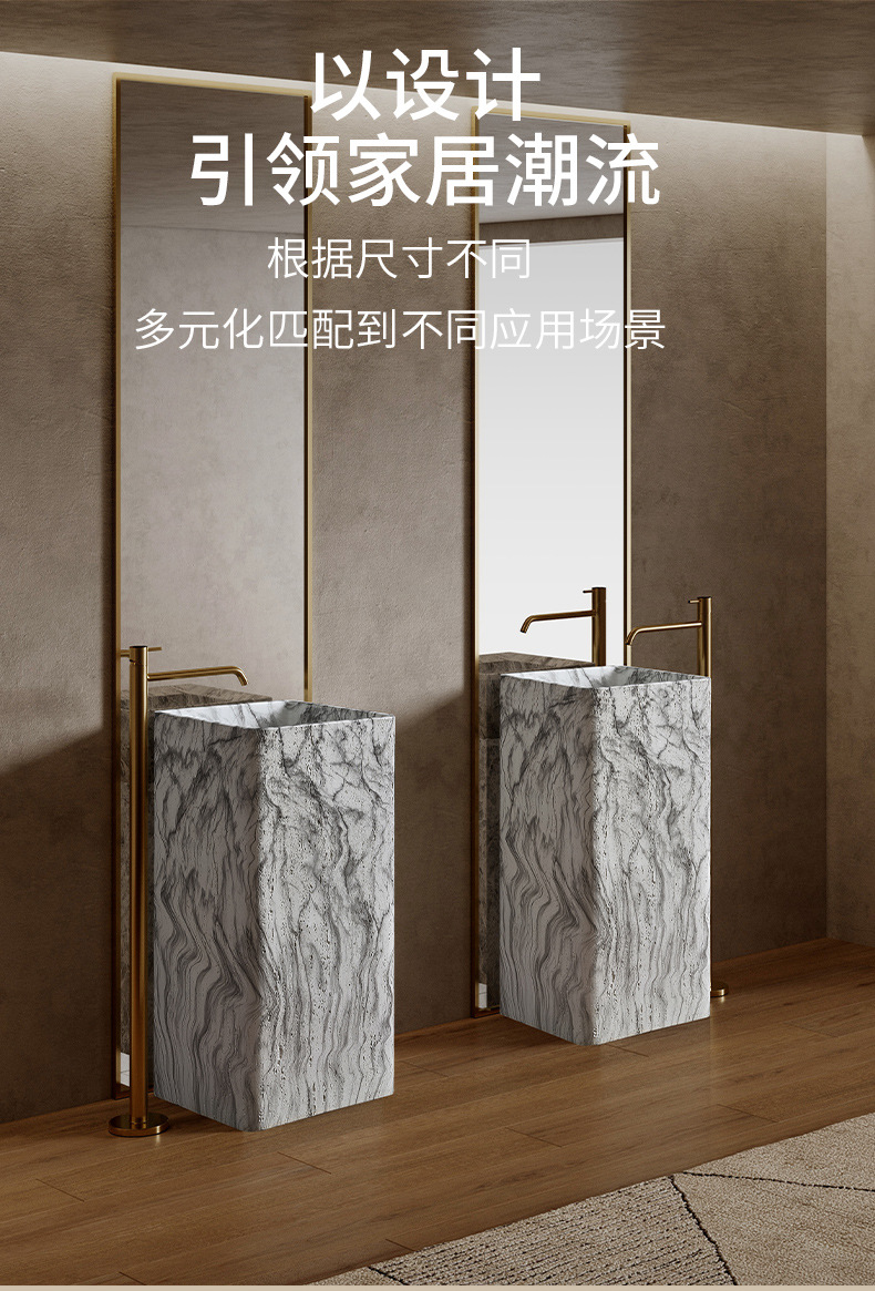 Минималистская пьедестальная раковина из искусственного травертина, интегрированная, напольная, имитация мрамора, дизайнерская раковина
