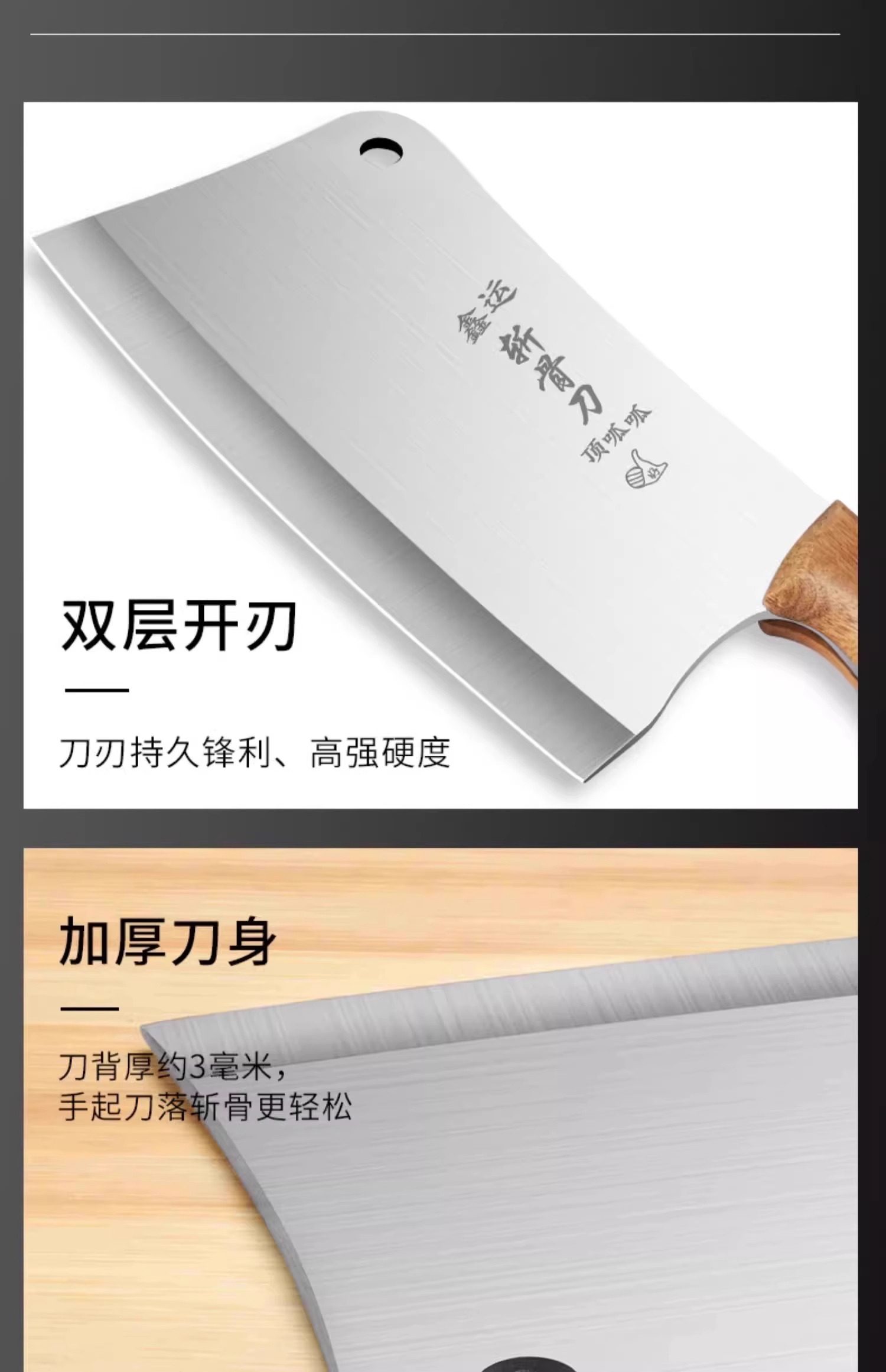 📦 | More than 60 ° 132mm 21CM | [cost-effective recommend] weighs about 0.80kg thick 5mm commercial cutting big bone knife [cut bad package compensation | 1шт: ¥18.50, 50шт: ¥16.50, 500шт: ¥14.50 | 1819 | 5733198712618 |