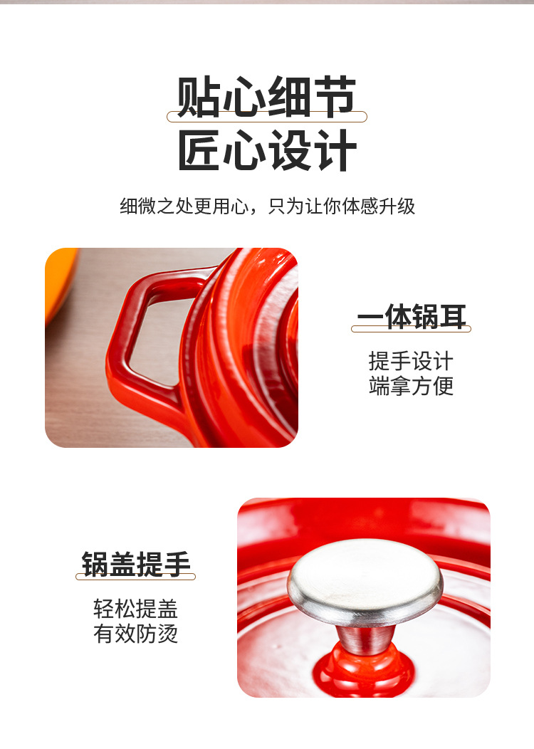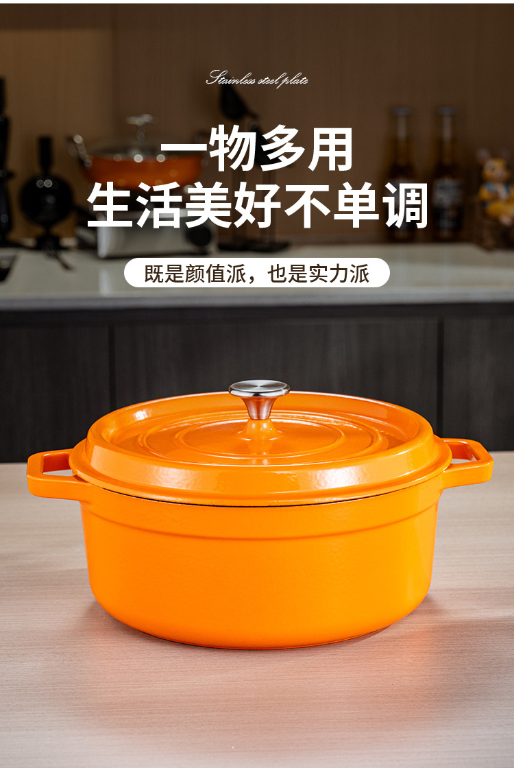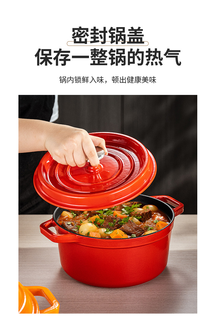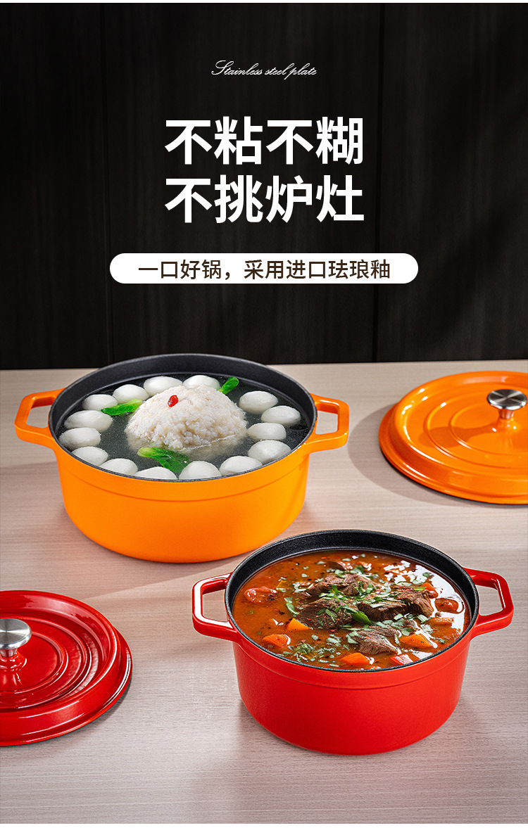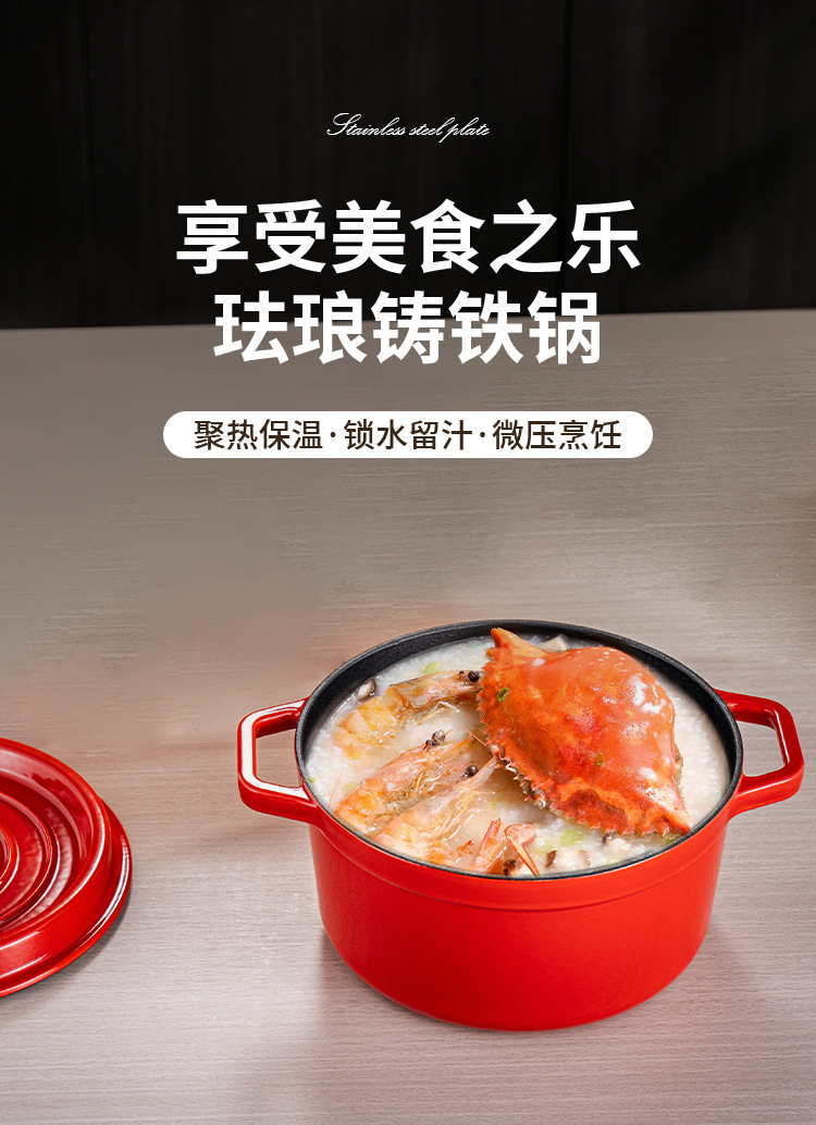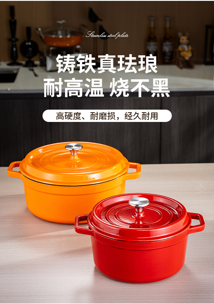 Эмалированная кастрюля, красная чугунная кастрюля, не покрытая, круглая, бытовая кастрюля для рагу, супа, антипригарная, для морепродуктов