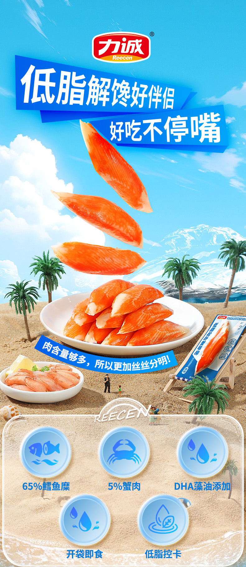 Низкокалорийные крабовые палочки 150г готовые к употреблению закуска с высоким содержанием белка