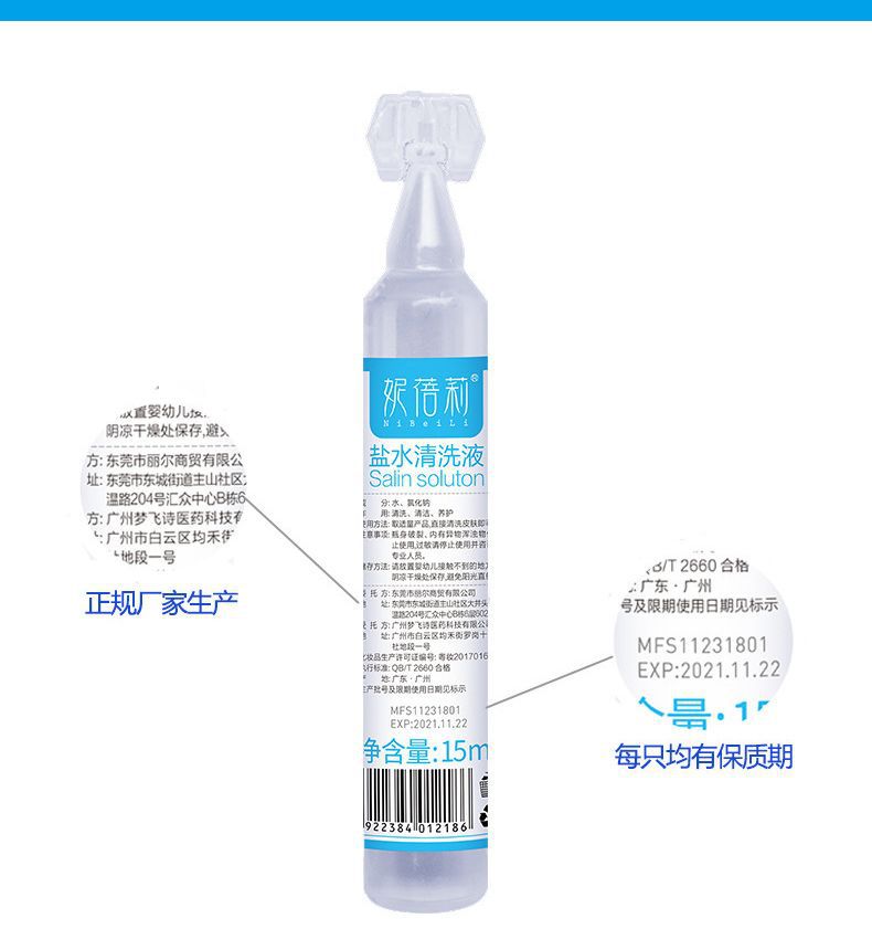 ![[Source Low Price] [One Piece on behalf of Hair] Nibeili Sodium Chloride Physiological Saline Small Branch 15ml](/api/image?url=https%3A%2F%2Fcbu01.alicdn.com%2Fimg%2Fibank%2FO1CN010qY4bB1ZzsaKk8JeG_!!2219341283266-0-cib.jpg)