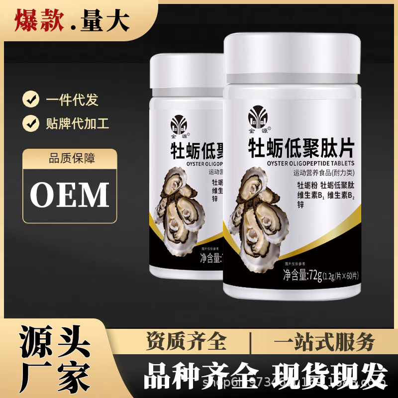 Таблетки с олигопептидами устриц Jinyuan 72г/бутылка Популярные таурин Витамин B Мужское спортивное питание Оптовая продажа