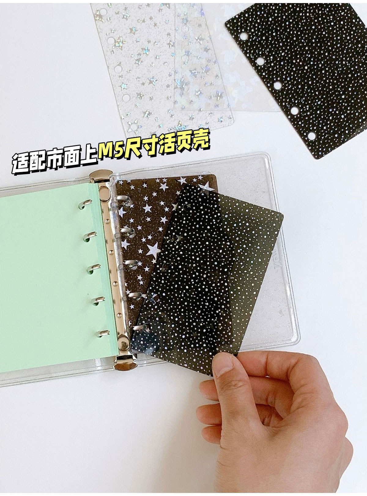 18 м5 a8, блокнот с кольцевым переплетом, прозрачный, классификационный индекс, литература и искусство, красивый, звезды, галактика, перегородка