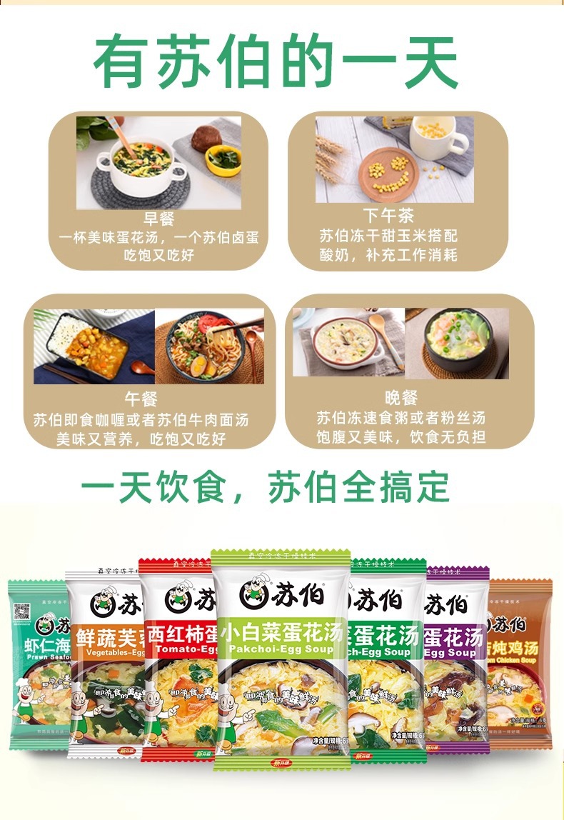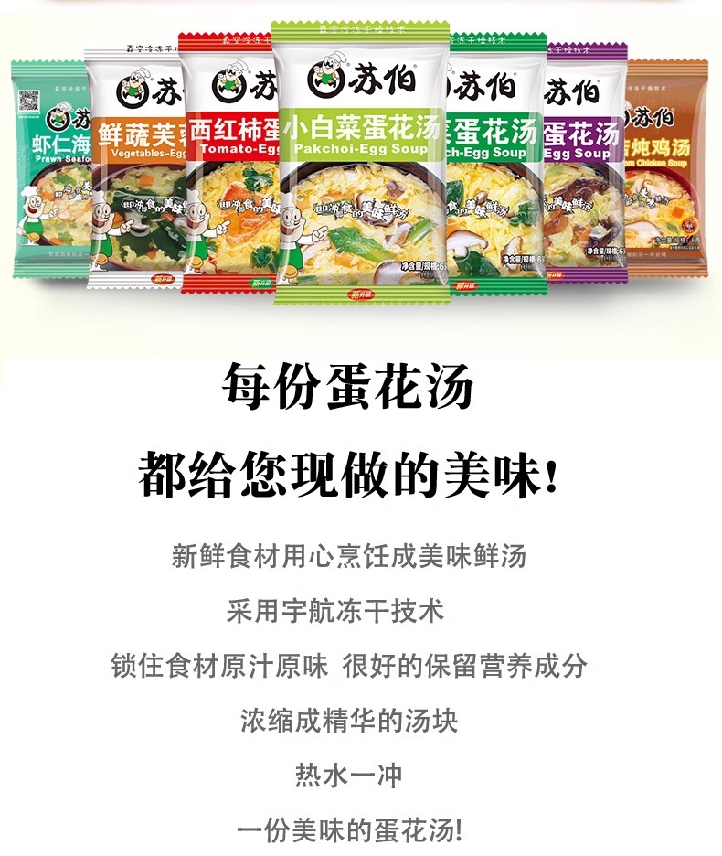 Пакет супа Su Bo, заваривание, не требует варки, 6г, морские водоросли, свежий овощной суп с яичным цветом, 9 вкусов, удобное питание