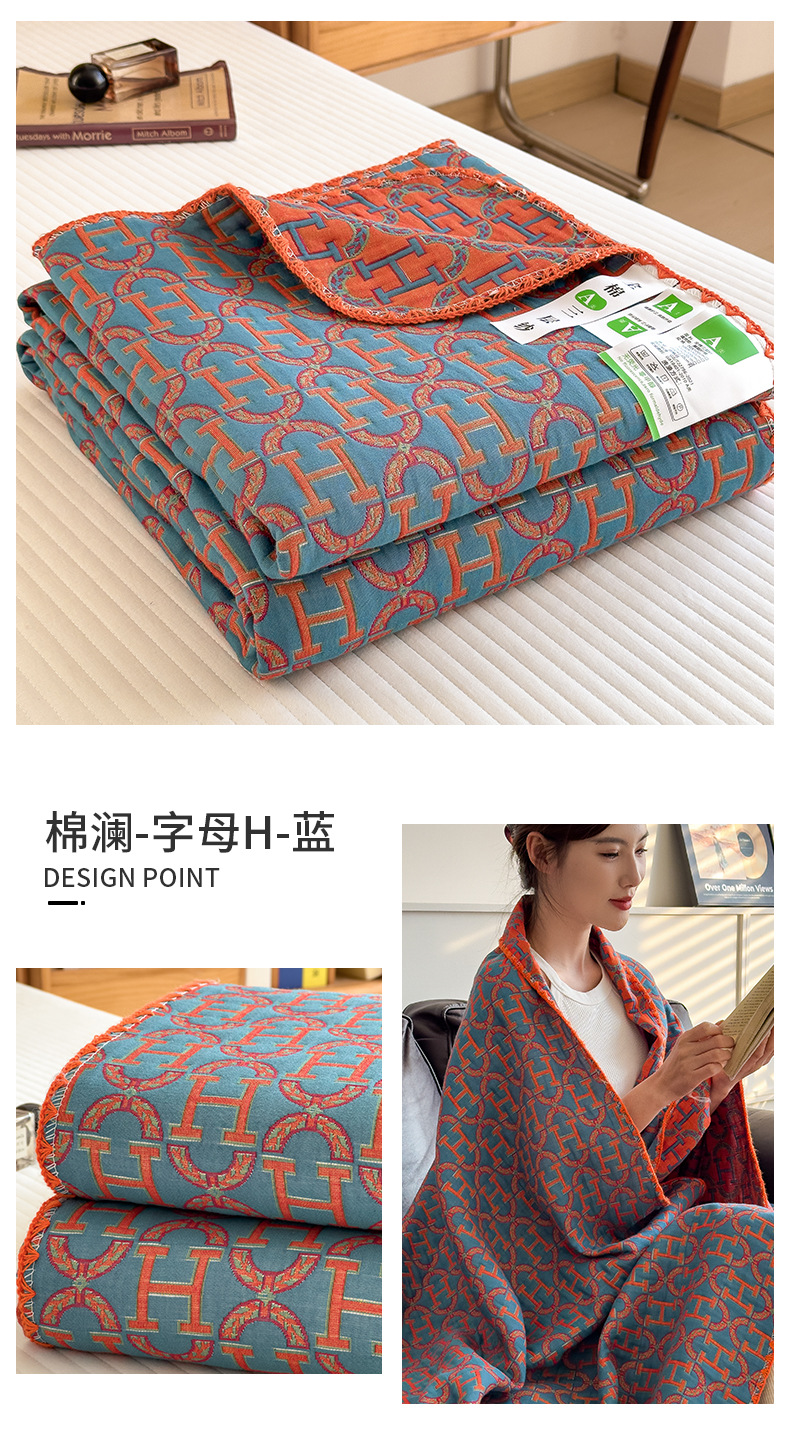 ![]() | Mianlan-letter h-blue-class a naked sleeping grade [pure cotton three-layer yarn, soft and breathable] | 150*200cm single blanket | ¥88.0 / ≈ 1 061 ₽ | 5888 | 6173322582085 | |