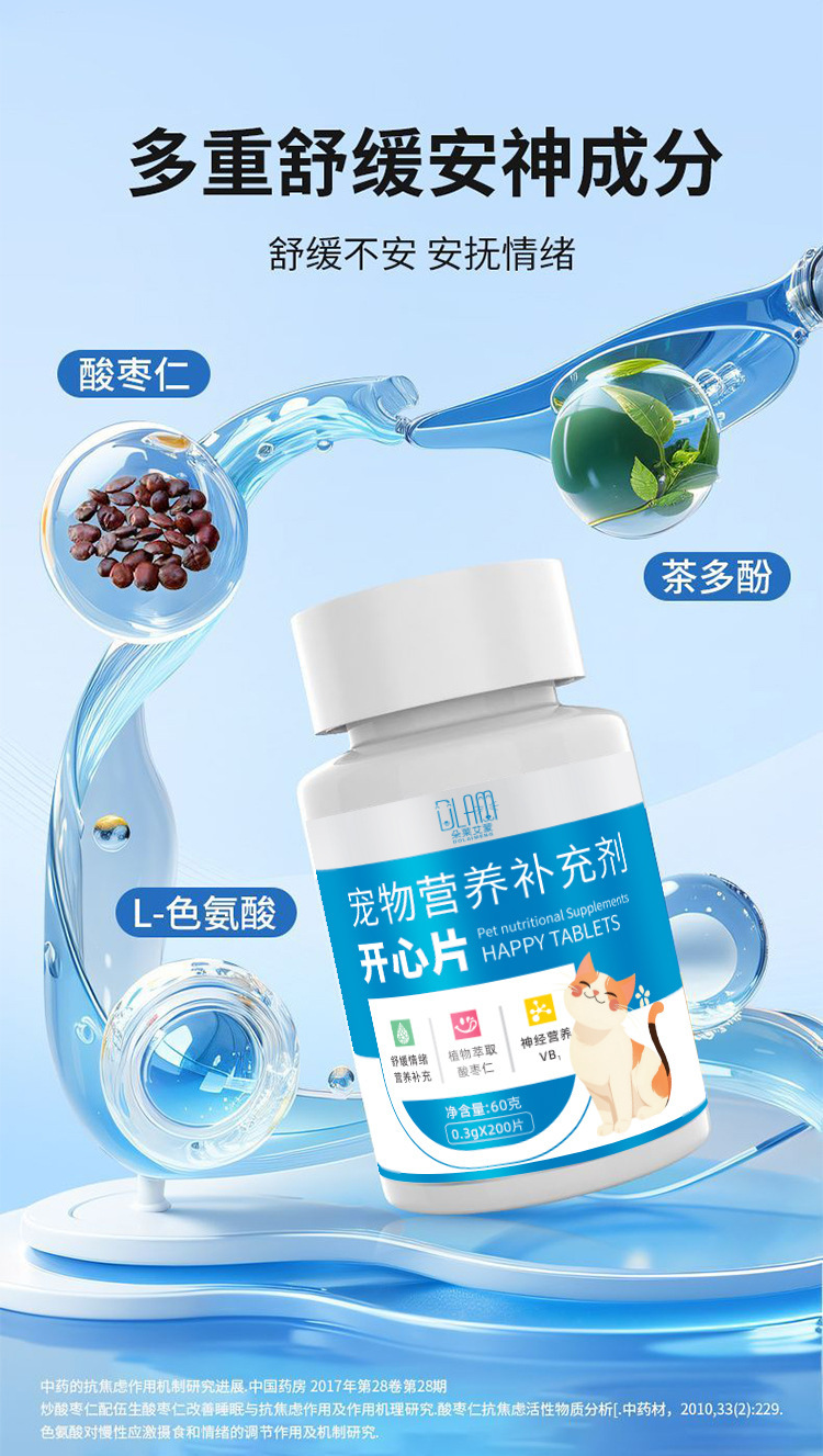 Таблетки Doraymond Happy для домашних кошек, успокаивают тревожность, регулируют эмоции и подавляют течку у крупных собак