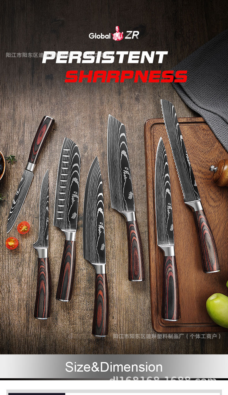 Западный поварской нож с лазерным узором, кухонный нож, дамасский нож, набор кухонных ножей