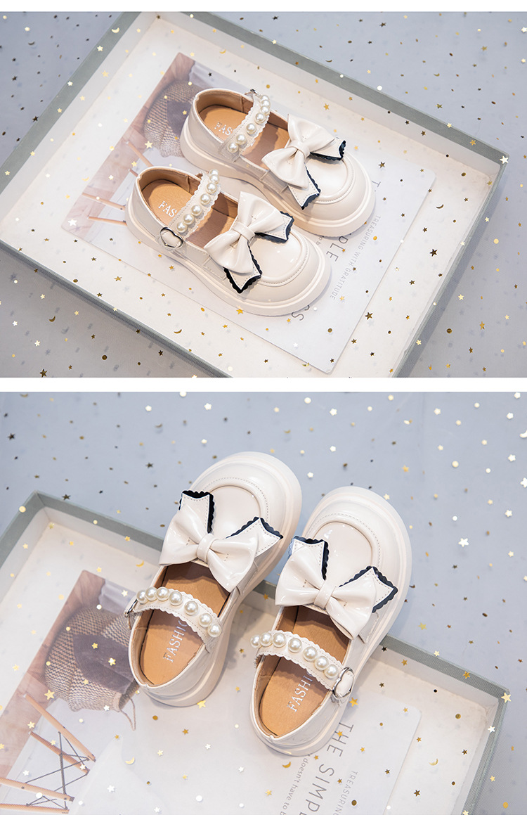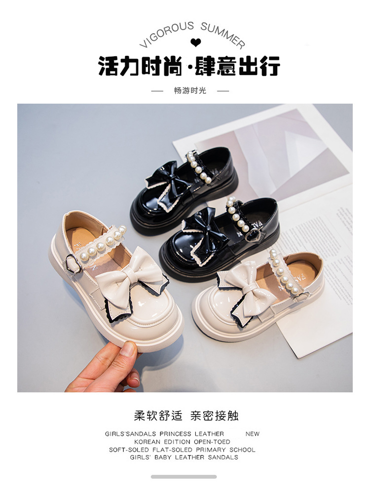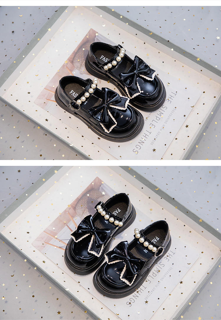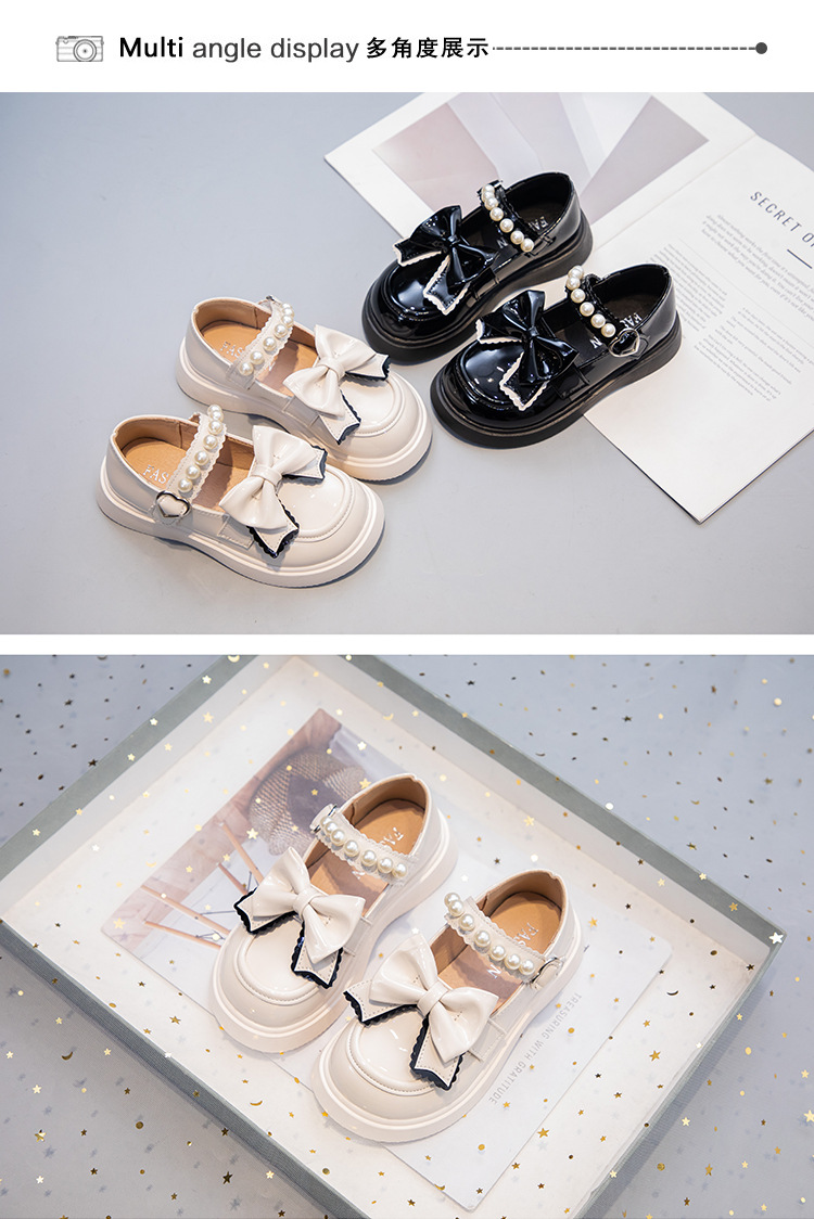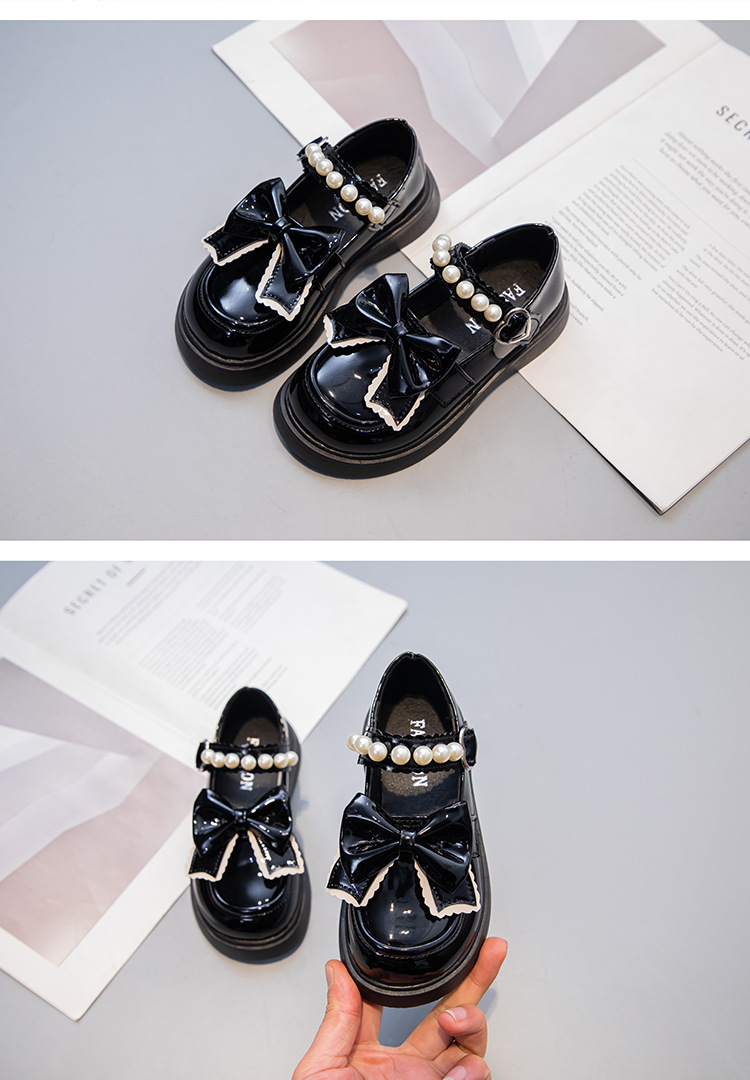 Маленькие кожаные туфли для девочек с жемчужным бантом, туфли принцессы, черные туфли для студентов, белые нескользящие танцевальные туфли, плоские туфли